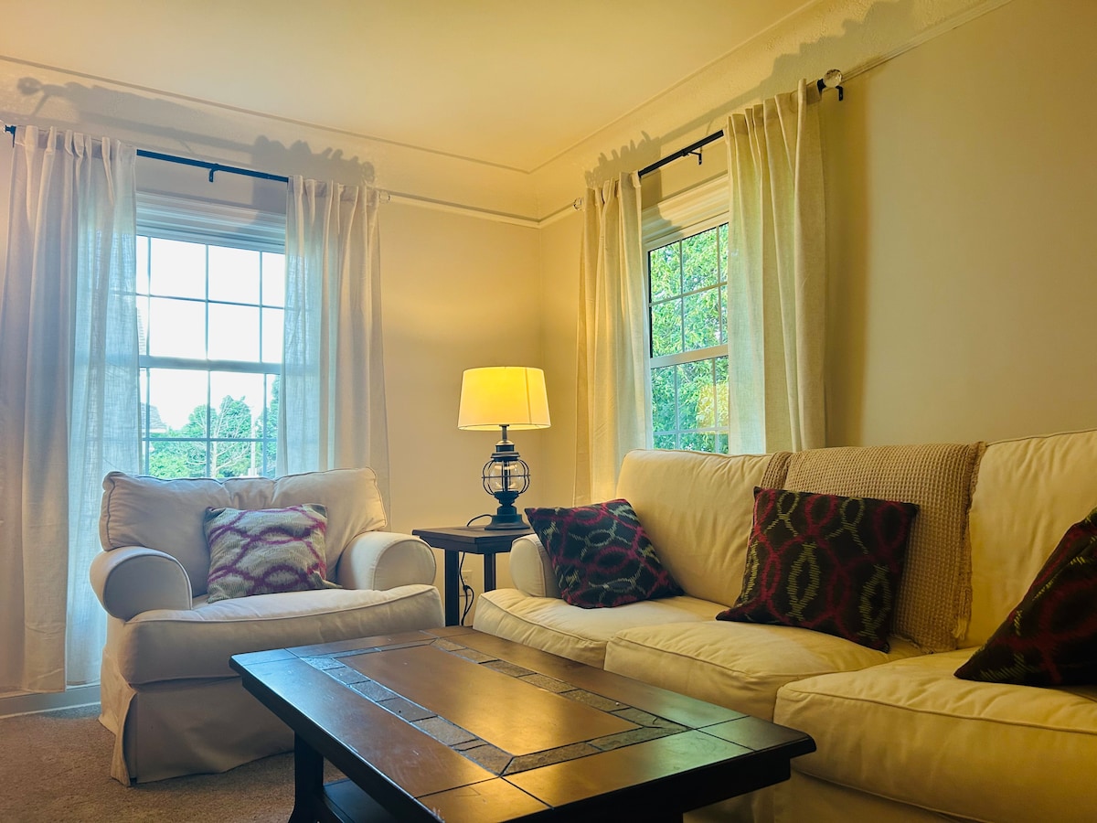 You’ll have access to the lower level suite which includes a seating area and bathroom. Guests are not allowed in the living areas located upstairs.