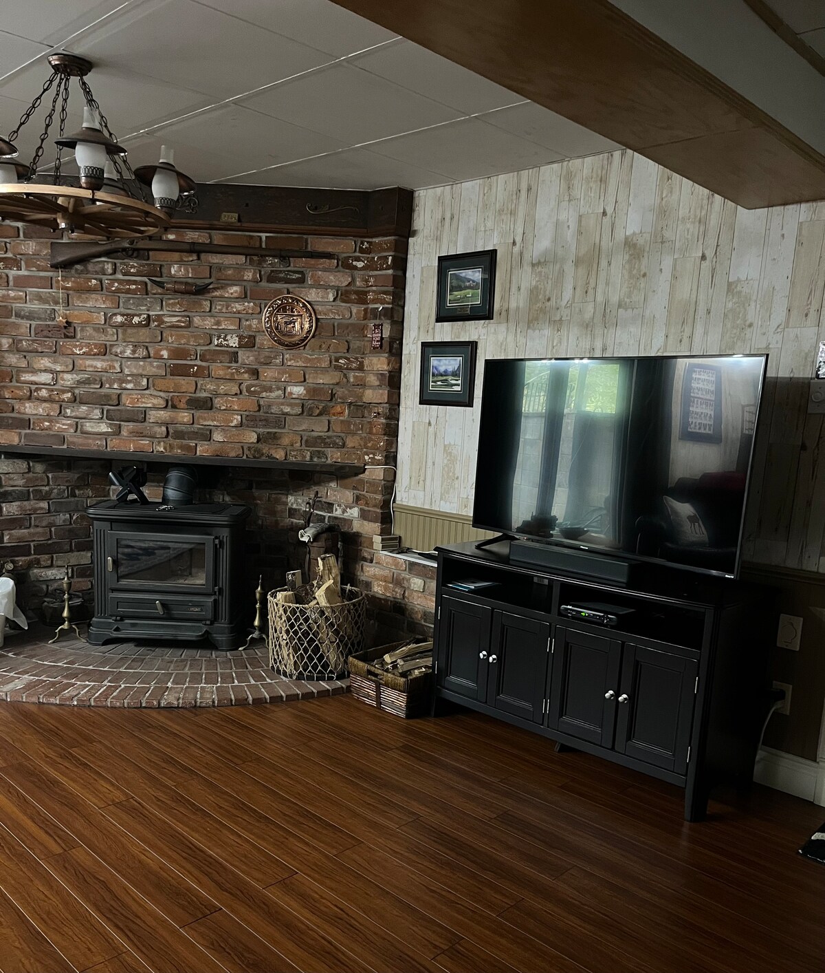 This cozy peaceful safe and clean cottage is the perfect spot to reconnect with yourself and your family. This is a cozy 2 bedroom family log cottage with a full kitchen, large living room with fireplace, patio doors leading to generous decking. The wood fireplace is sure to warm you body and soul. In Summer there is a portable air conditionair and each room has a fan.