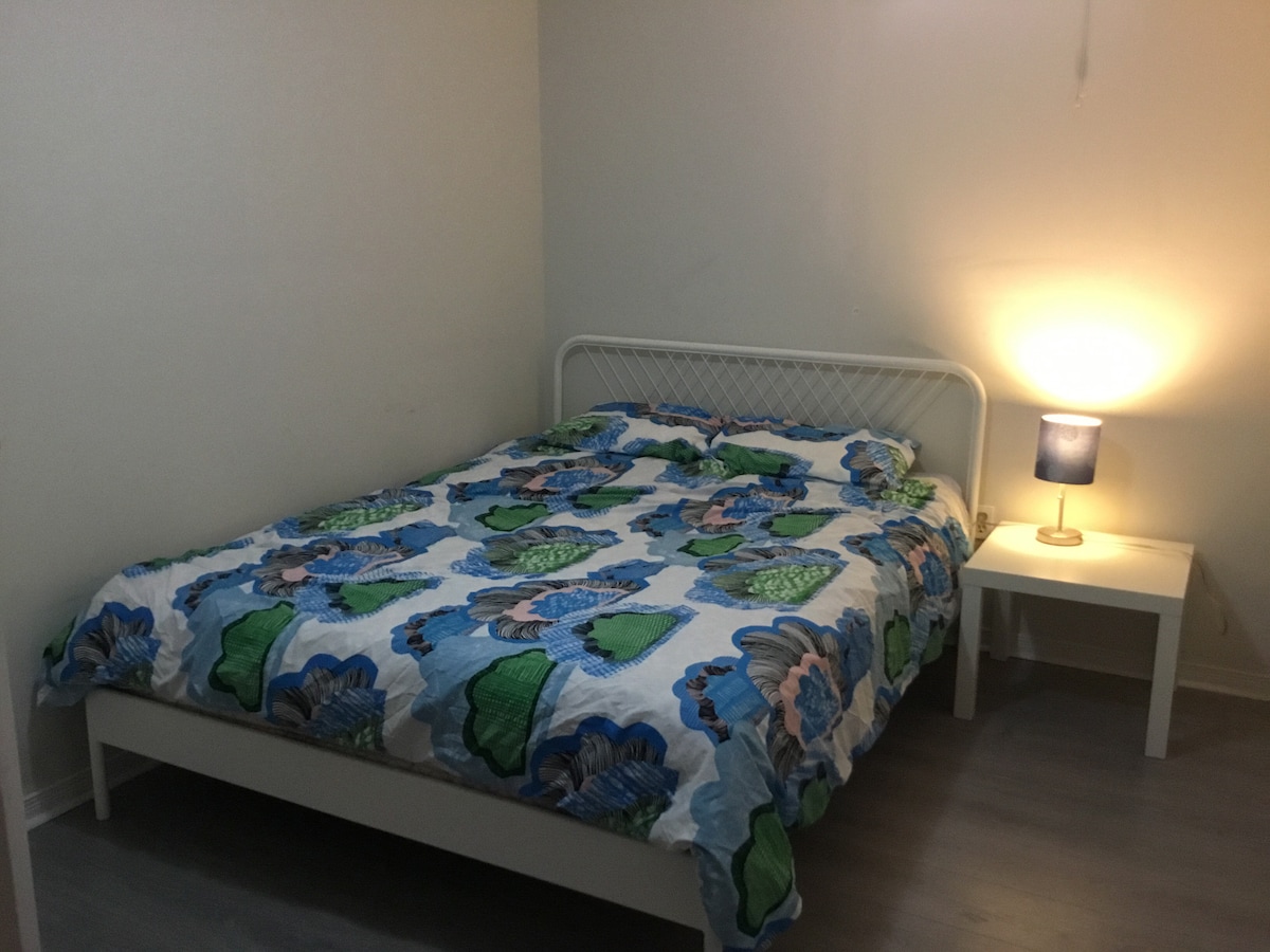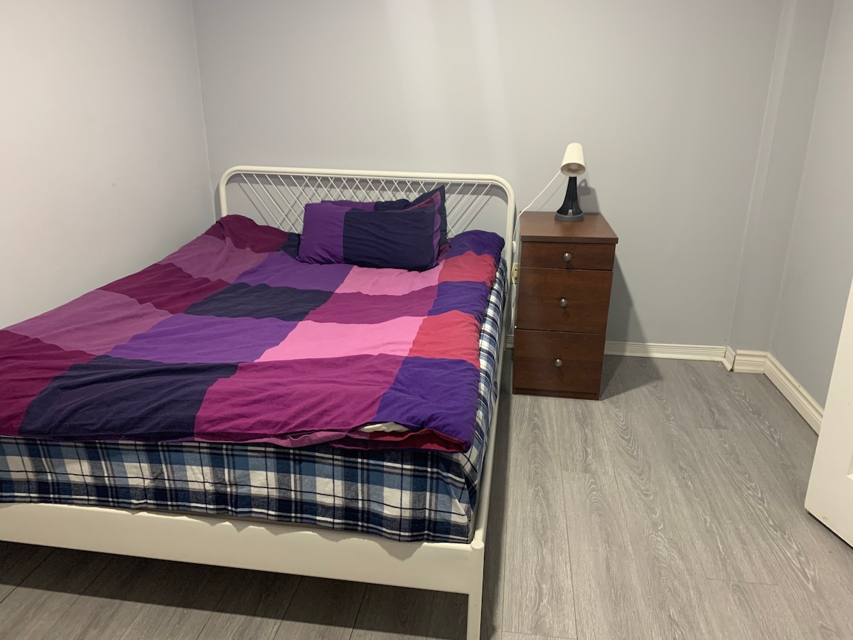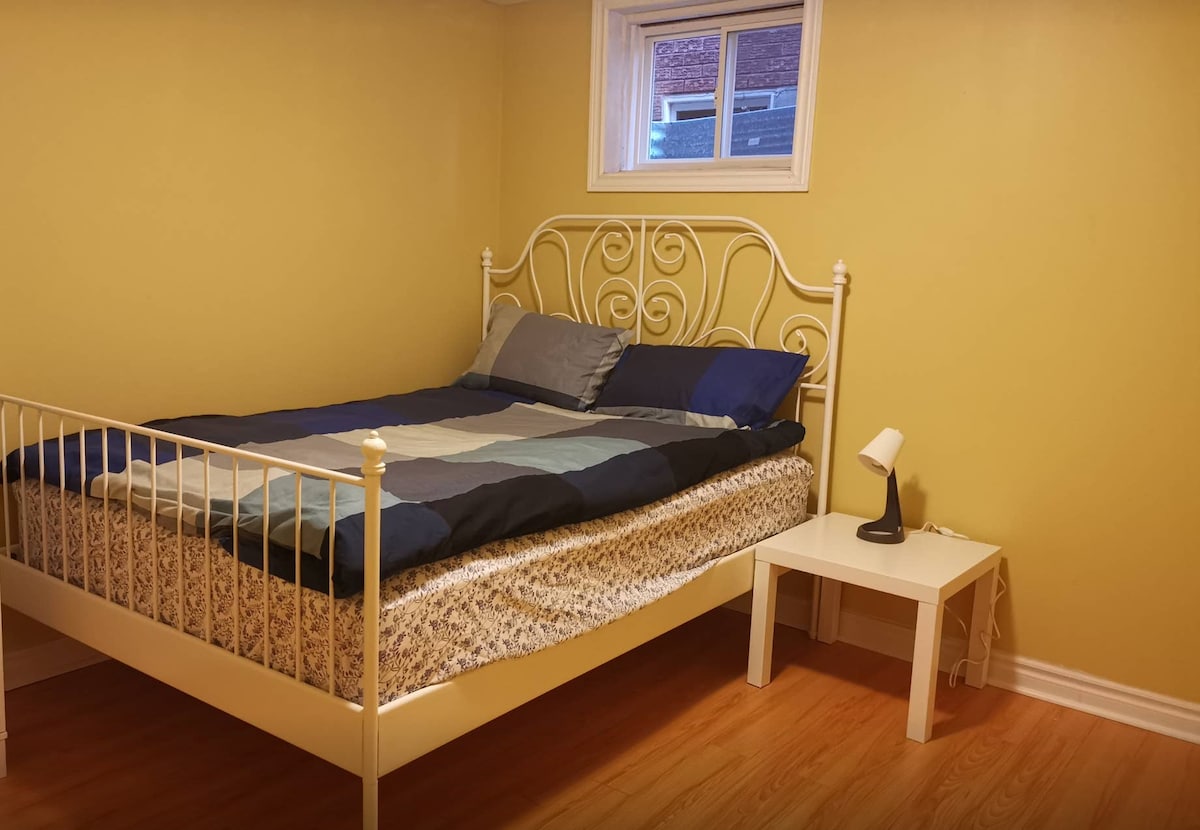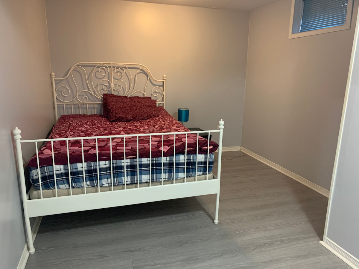 This Cozy Bedroom is located in the 3 bedroom-walk-out main floor in a bungalow house that. We take great pride in having a clean and healthy living environment. This room comes with a shared bathroom, with shower, sink and toilet. We provide fresh towel to our guest and the room is equipped with 3 in 1 shampoo, body wash, toilet paper and other things you may need.
