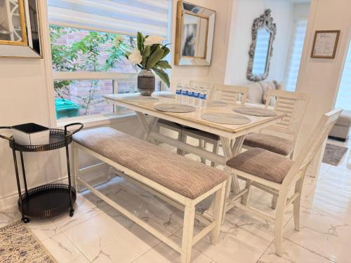 Welcome to our modern 2-bedroom retreat in Mississauga! Perfect for up to 6 guests, it features exclusive access, plush bedding, a cozy living area with streaming, a fully equipped kitchenette, and free parking. Relax on the serene patio with your morning coffee. Allergy-friendly and pet-free, our spotless space is a true “home away from home.” Near Erin Mills Town Centre, GO Station, and 30-40 minutes from Toronto, enjoy easy access to dining, shopping, and attractions.