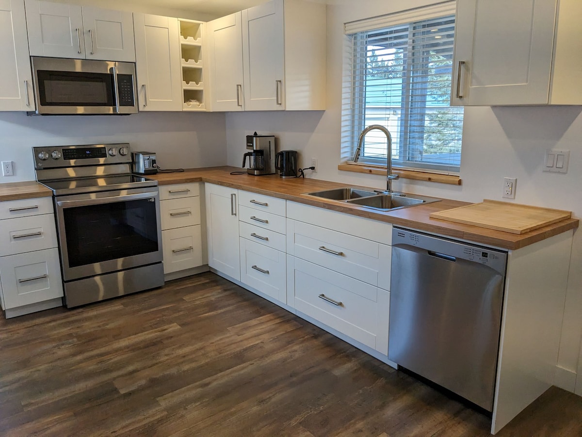 While you're here, you can enjoy all the comforts of home and more, including an oven and a stovetop, as well as a dishwasher and free WiFi. Other amenities include a freezer, kitchenware and utensils, and a toaster.
