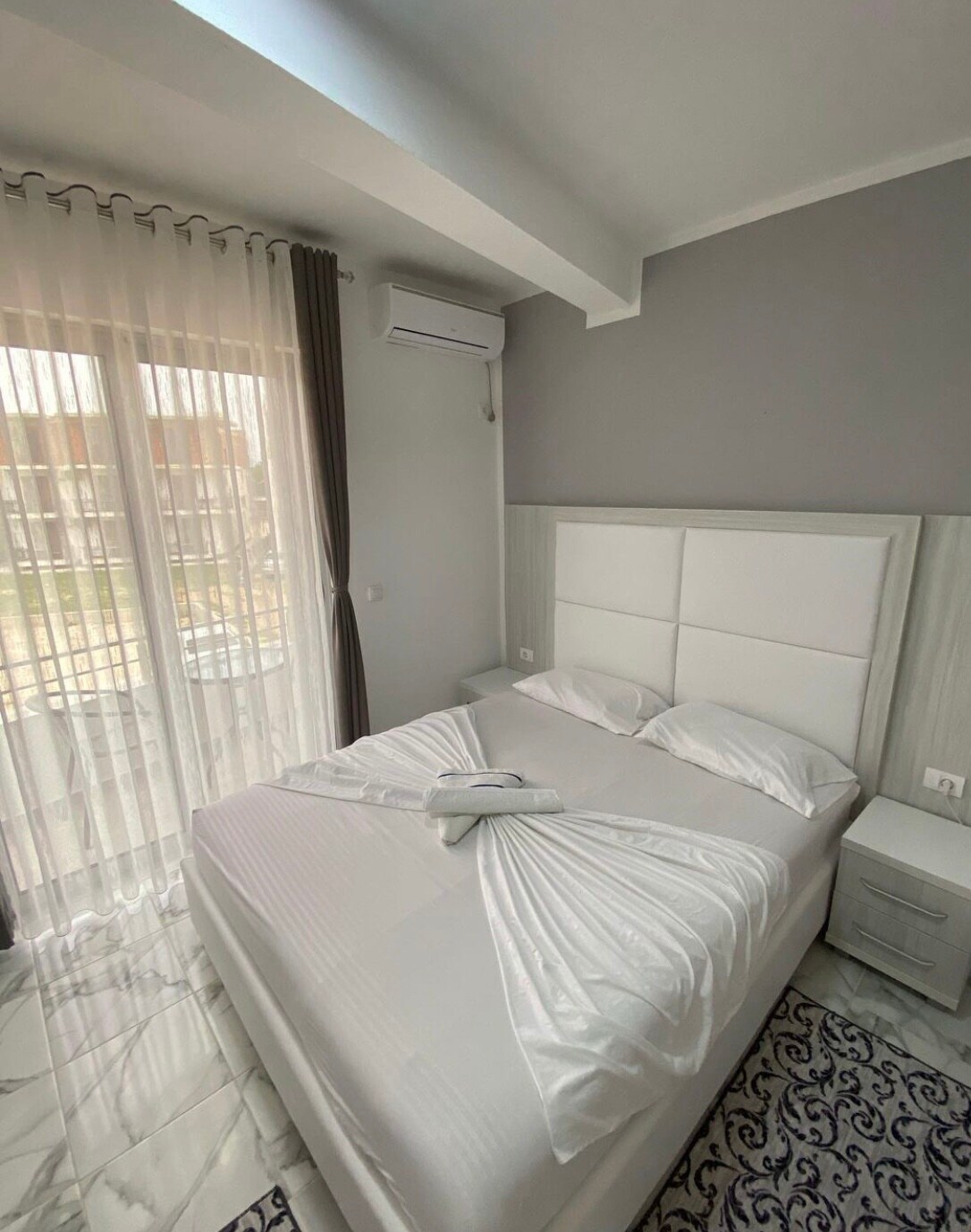 Just a 14-minute walk from Mala Ulcinjska Beach and 1.2 miles from Old Town Ulcinj, Apartments D'Hermes features accommodations in Ulcinj with a garden. This property offers access to a balcony, free private parking, and free Wifi. Pool views are a highlight at the apartment's pool. Providing a terrace and sea views, the apartment includes 1 bedroom, a living room, flat-screen TV, an equipped kitchen, and 1 bathroom with a bidet and a bath. Guests can enjoy a meal on an outdoor dining area while overlooking the mountain views. The apartment offers bed linen, towels, and daily room service. Port of Bar is 19 miles from Apartments D'Hermes, while Rozafa Castle Shkodra is 27 miles away. Podgorica Airport is 44 miles from the property.