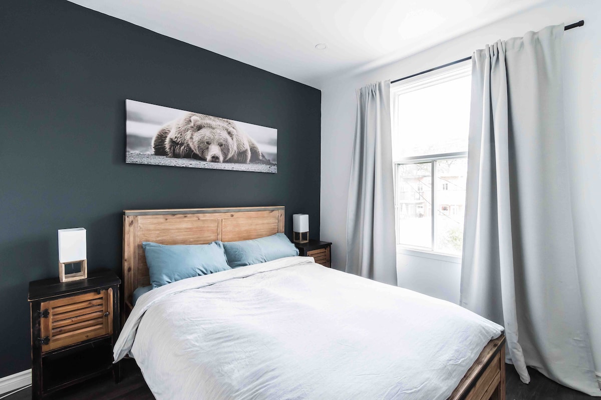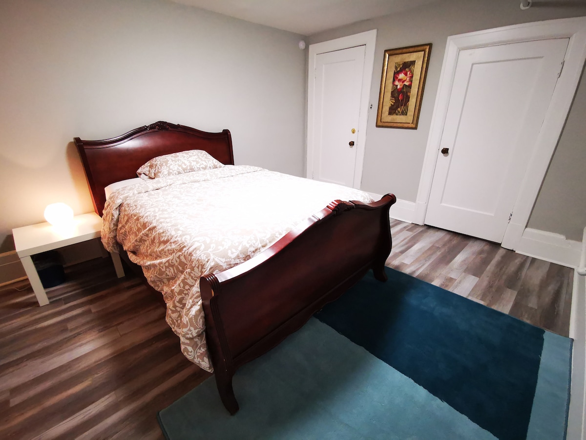 Welcome to your cozy getaway! This inviting room features a comfortable queen bed with high end mattress and a TV for your entertainment, offering the perfect space to relax after a busy day. The shared washroom is conveniently located and only shared with one other guest, ensuring your comfort and privacy. Ideal for solo travelers, this room provides a peaceful retreat in a welcoming home. Forget your worries in this spacious and serene space.