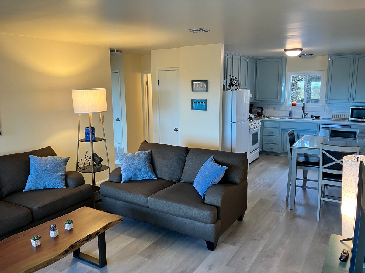 Clean remodeled 2 bedroom/1bath cottage near ocean. Comfortably sleeps 4. New beds in all rooms. 1 King bed in master bedroom, 2 double bed in 2nd bedroom. Electric fireplace, and large courtyard/patio. Backyard landscaped, making this a relaxing vacation cottage.