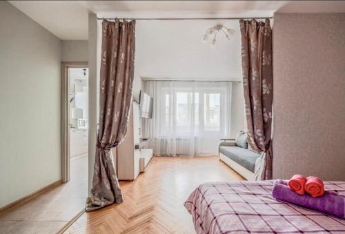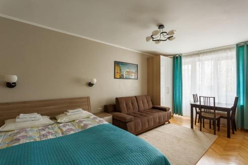 Located 5 km from Bolshoi Theatre, Sunny Apartment Volkov 21 offers air-conditioned accommodation with a balcony and free WiFi. Featuring a kitchen with a microwave and a fridge, each unit also comes with a satellite flat-screen TV, ironing facilities, wardrobe and a seating area with a sofa. There is a private bathroom with shower and a hairdryer in each unit, along with free toiletries. Hiking can be enjoyed nearby. State Historical Museum is 5 km from the apartment, while Arbat Street is 6 km away.
