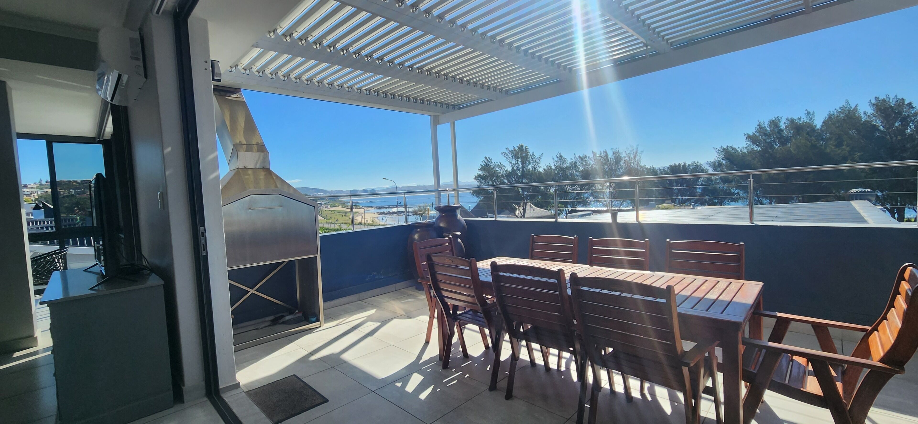 Spacious open-plan living area. Newly refurbished deck runs the entire length of the property with magnificent views of the Indian ocean and Outeniqua mountains. It offers free WiFi and on-site parking.