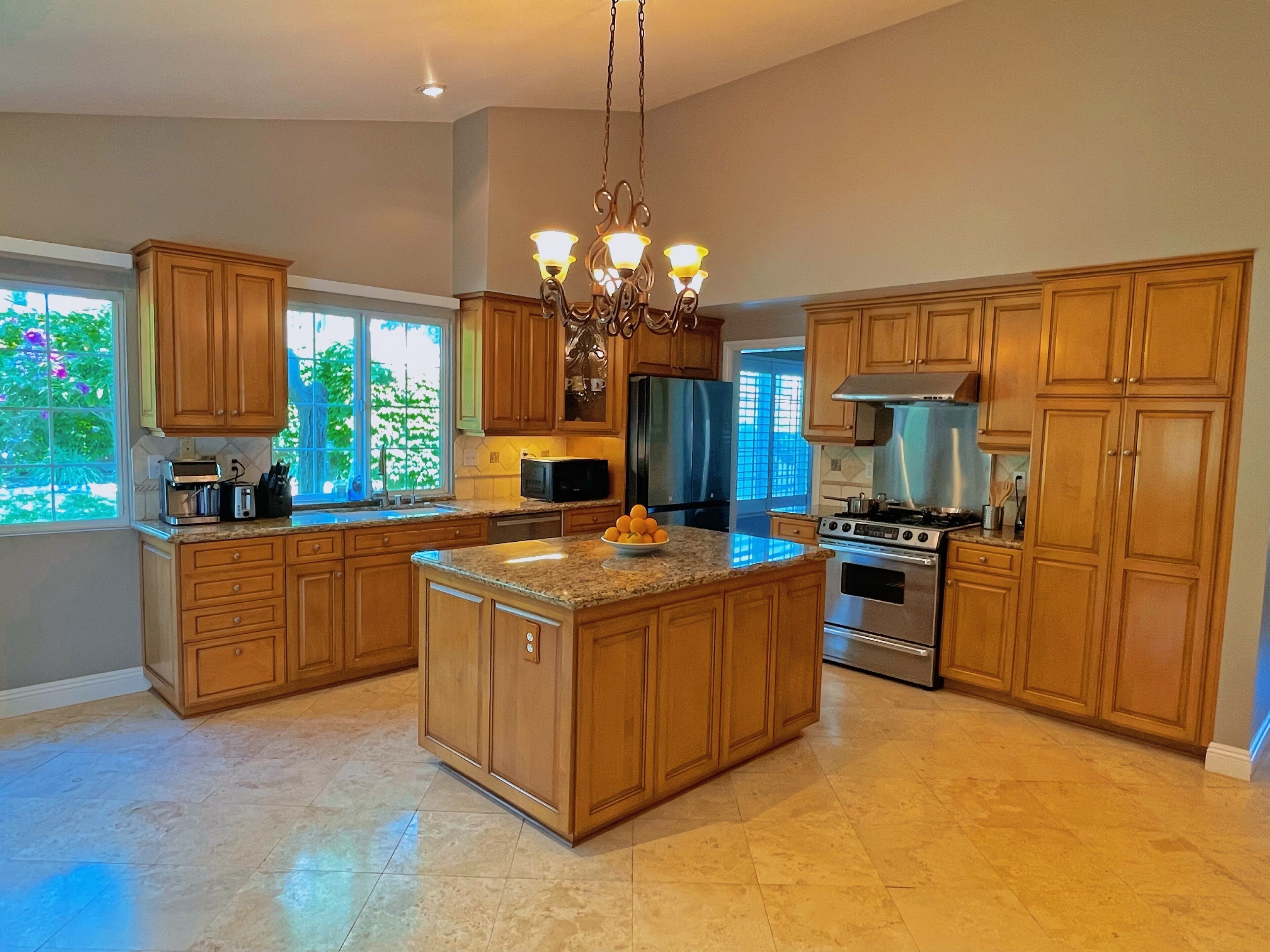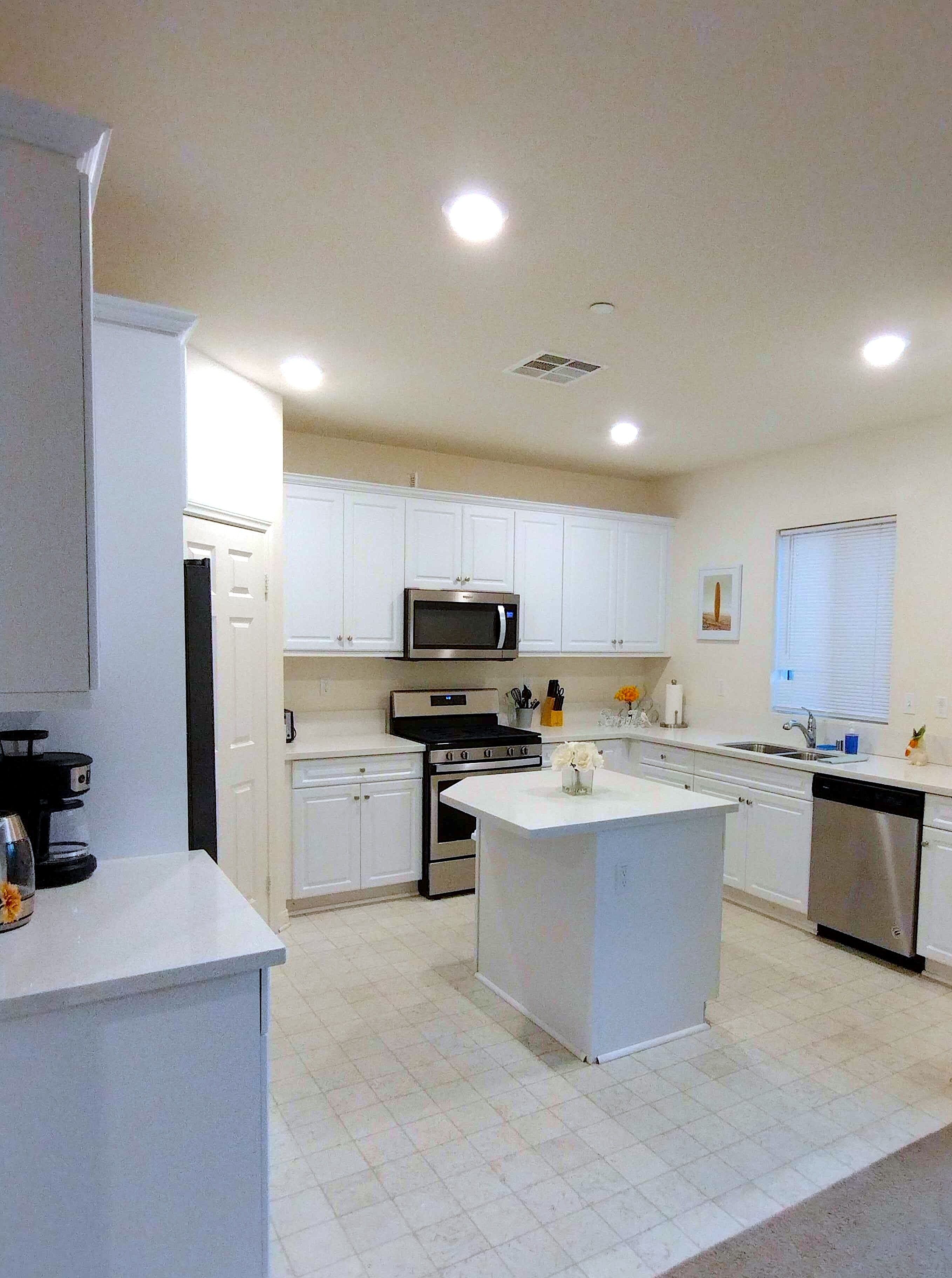 - "My family of 5 stayed at this house for 3.5 months while my husband underwent surgery and treatment at City of Hope. The home and yard are beautiful from the outside, and most importantly it was a safe neighborhood. Upon our arrival, it was clear that the house had not been used for some time. We had several issues right from the beginning that were quite inconvenient: washing machine leaked all over the floor, dishwasher didn't work for the first month, and refrigerator and freezer thawed and we lost an entire fridge full of food. While these issues were addressed, it took some time and was an extra headache that we didn't need during an already stressful time for our family. Additionally, the kitchen of this house was fairly ill equipped. There were very few kitchen utensils and tools and not enough plates for the number of people that the home could accommodate. We ended up buying quite a bit of kitchen supplies. Some of the furniture in this house needs updating as well. The stools and chairs for eating at were all very rickety and kept falling apart with just normal use. One of the beds in the upstairs bedroom has a terribly uncomfortable mattress that would not have worked for an adult. Fortunately, that was the bedroom that my 4.5 year old twins used and they didn't complain. Setting those things aside, we did make use of the backyard each day. There is a very cool sliding wall of glass that opens up the whole kitchen area to the outside space. There is a hot tub with water feature that was a huge hit for my kids. We just heated it enough to function as a small pool. Another great perk of the backyard was the side driveway (probably meant for parking an RV). Since this area was within the fenced in backyard, it was perfect for my daughters to ride their bikes and scooters and to do chalk. The master bedroom and bathroom is spacious and updated and was very comfortable for us. We had several family members and friends come to visit and help us during our time there and they were able to stay comfortably in the guestroom upstairs that has an attached bathroom and king size bed. The other bedroom upstairs we used for my 1.5 year old who slept in a pack n play, so we didn't make use of the bed in that room. There is an office on the main level that is listed as a space to sleep, however it only has a futon and would not be comfortable for any length of time. Despite the challenges at the beginning, we did enjoy."