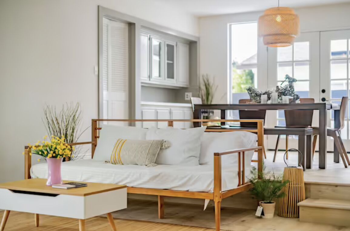 Nestled in Claremont’s quiet, tree-lined streets, our master bedroom in a private pool house offers a tranquil retreat minutes from five prestigious colleges. Wake up in a spacious, elegantly furnished suite with natural light and garden views.