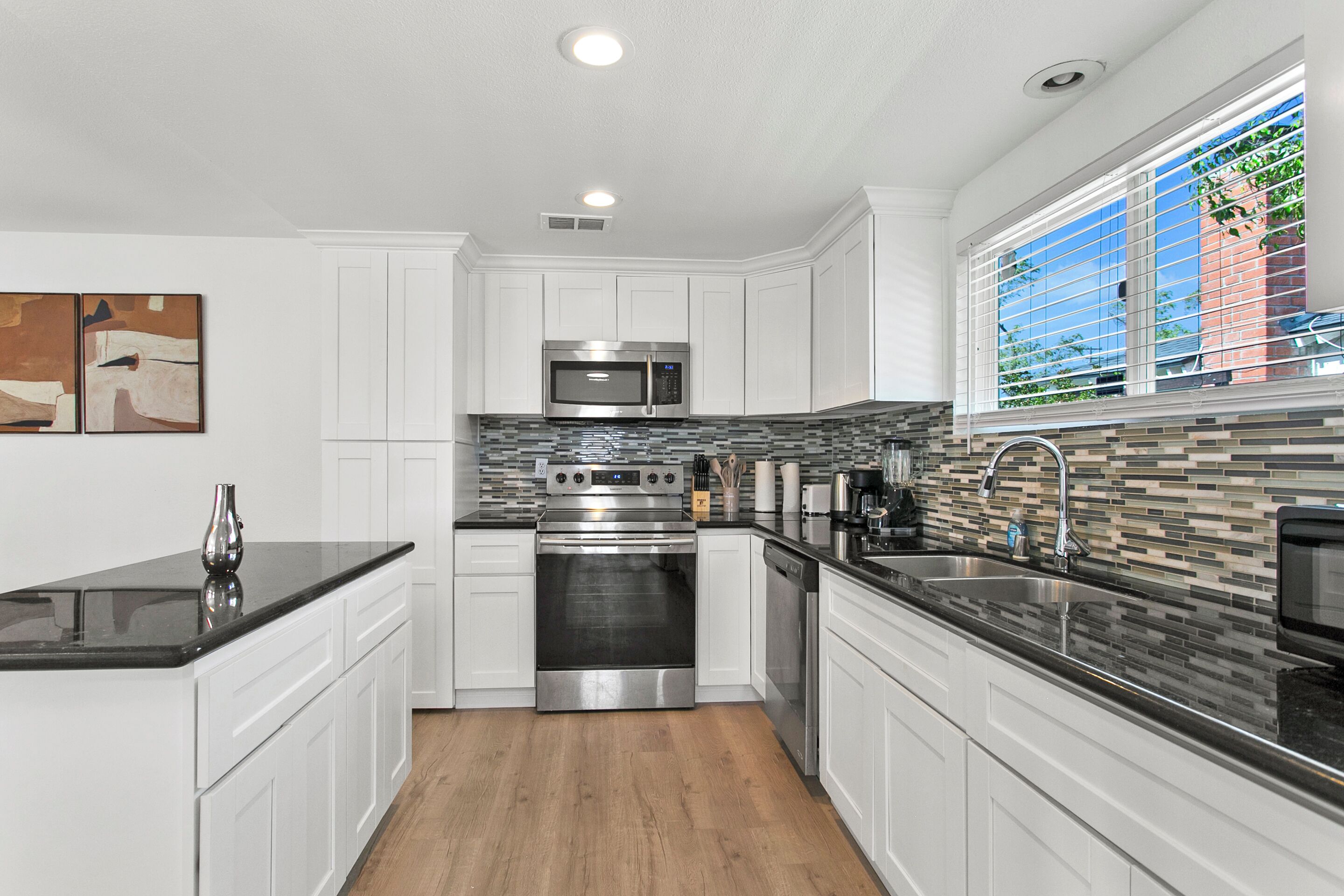 Full kitchen, washer/dryer, and central A/C