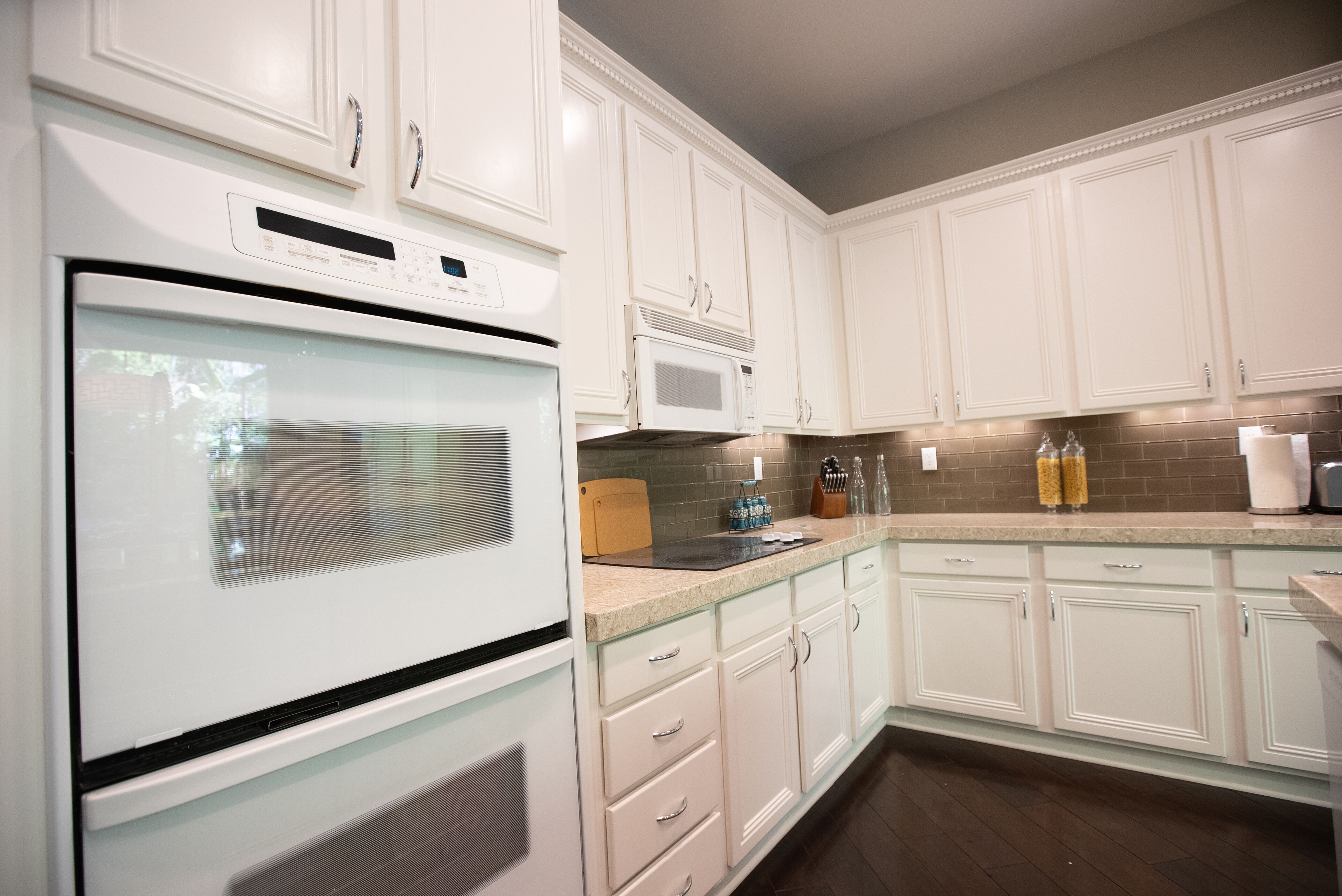 While you're here, you can enjoy all the comforts of home and more, including a full-sized refrigerator/freezer and an oven, as well as a stovetop and a dishwasher. Other amenities include laundry facilities, towels, bathrobes, and kitchenware and utensils.