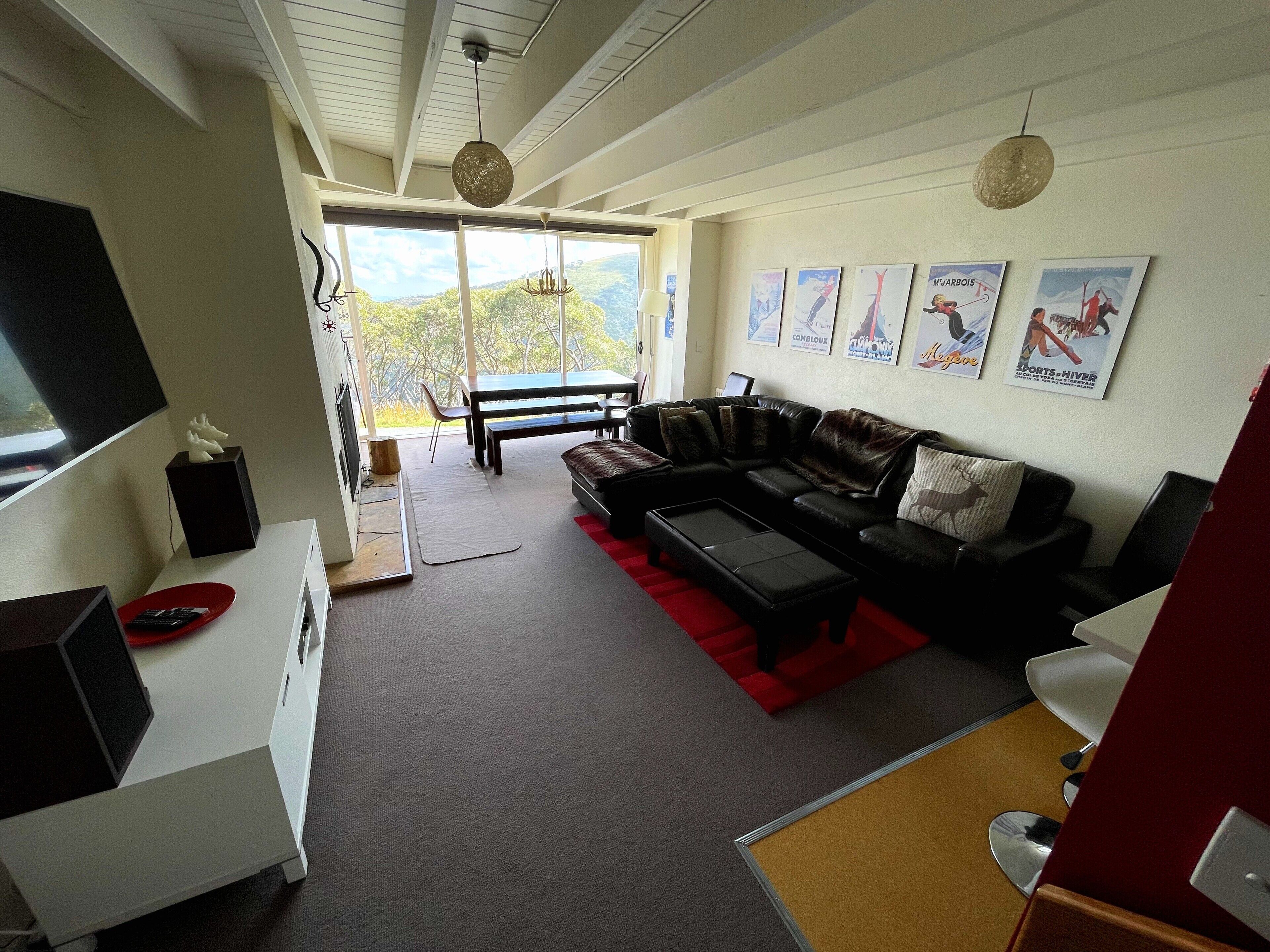 This large sun filled northeast facing 2 storey apartment with 2 bedrooms and, 2 bathrooms for 6, has a large balcony and sweeping views across Swindlers Valley towards the slopes and Mount Feathertop.