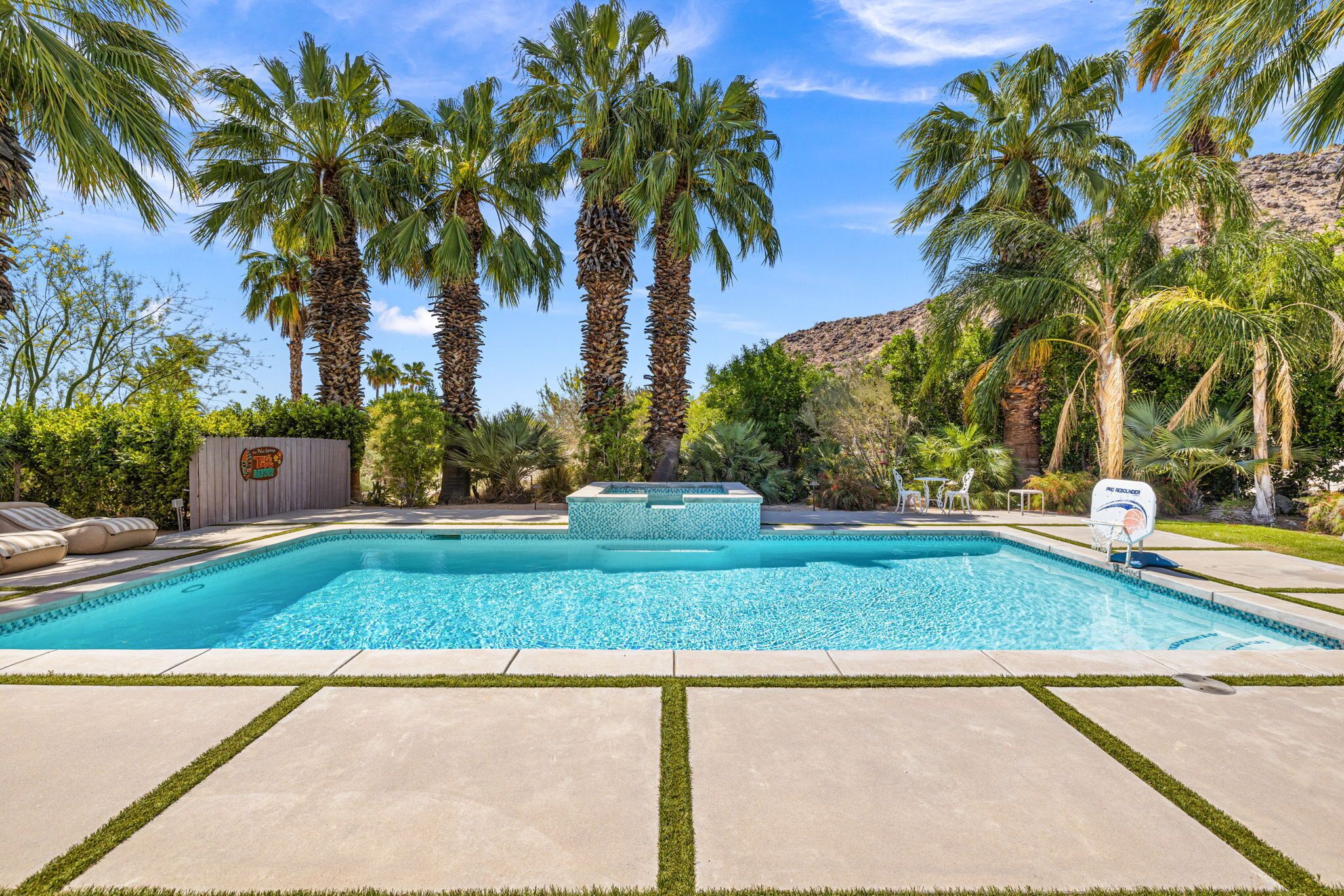 So in saying all this folks, come soak up the Palm Springs sun, surrounded by the gorgeous Mt. San Jacinto mountains that looms up right behind the house, where you can look up and see where the famous Palm Springs Aerial Tram travels to the very top, and even when it's 100 degrees on the desert floor, you might get to see snow up there at the same time if you're lucky. And I hope you always are!