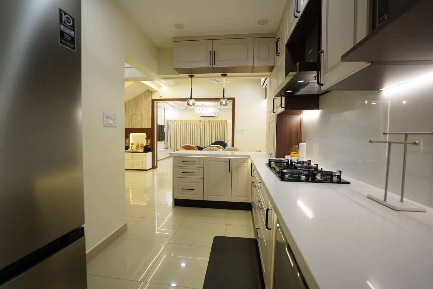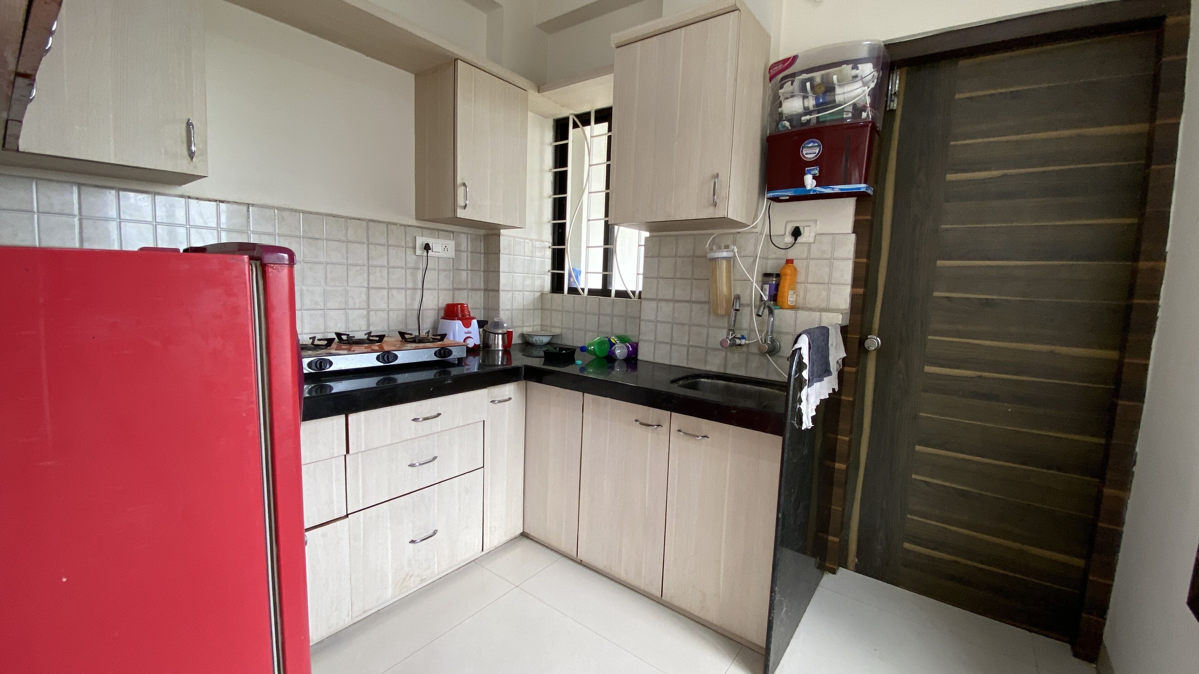 Calling all vegetarian cooks! Unleash your culinary creativity in our state-of-the-art kitchen. It's fully equipped with everything you need to whip up delicious meals: a built-in gas hob for efficient cooking, a chimney to keep the air fresh, sparkling quartz countertops for easy cleaning, a deep sink with hot water supply for convenience, RO water for peace of mind, a dishwasher to save you time, a microwave oven with a grill for versatility, and a spacious refrigerator to store all your groceries.