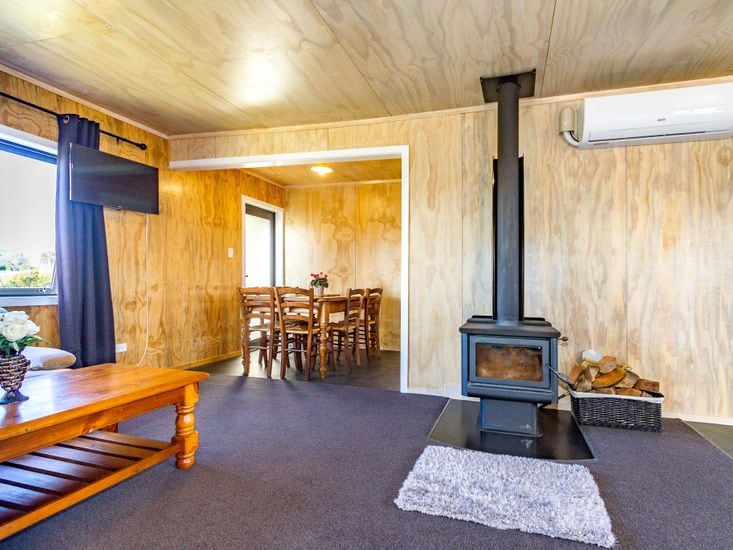 The perfect spot to enjoy our little slice of paradise. In summer fling the ranch sliders open and it's cool and airy. In winter choose between the cosy atmosphere of a log fire or convenience of the heatpump . Firewood is provided.