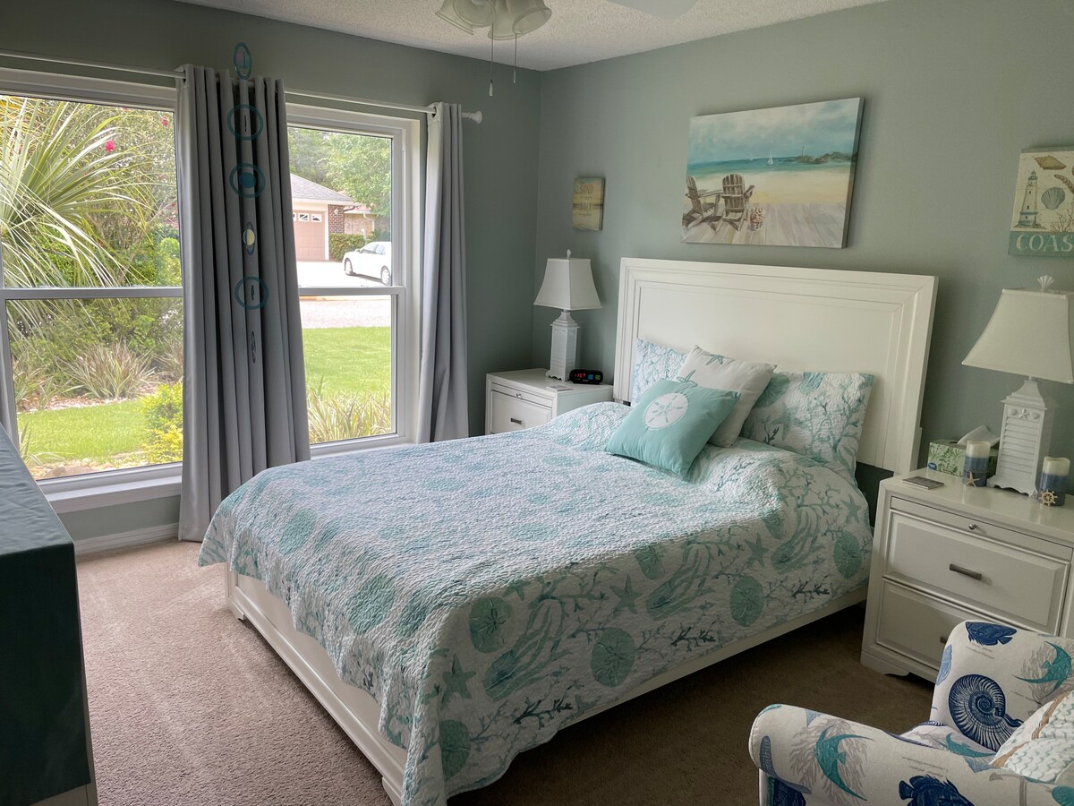 Block off between 2 sides . You have your own entrance. Perfectly placed for you to visit our Navarre Beach within a few minutes, also within an an hour or less you can visit Fort Walton Beach, Destin to the East and Orange Beach, Gulf Shores to the west. Don't forget Pensacola Beach is about 25 mins to the west! This room is setup just like a hotel room with a bedrooms a queen beds, microwave, toaster oven coffee maker refrigerator weber grill is available in the back porch a WiFi tv.