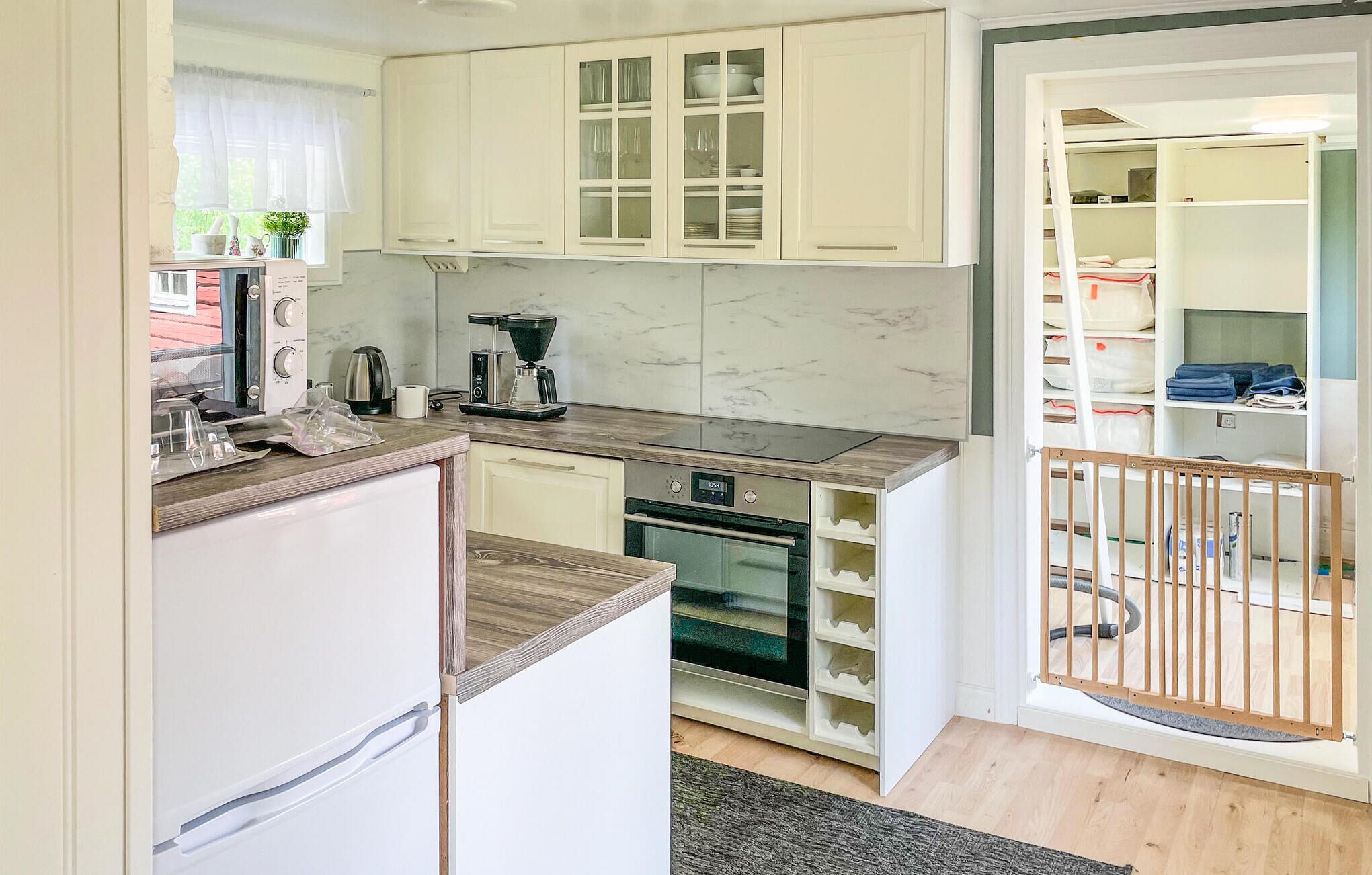 By fantastic is meant in this, a cozy little apartment with only 215cm ceiling height, in the room is eg. according to legend Nora's oldest preserved tiled stove that can be fired in, as well as a more modern wood stove in the kitchen.