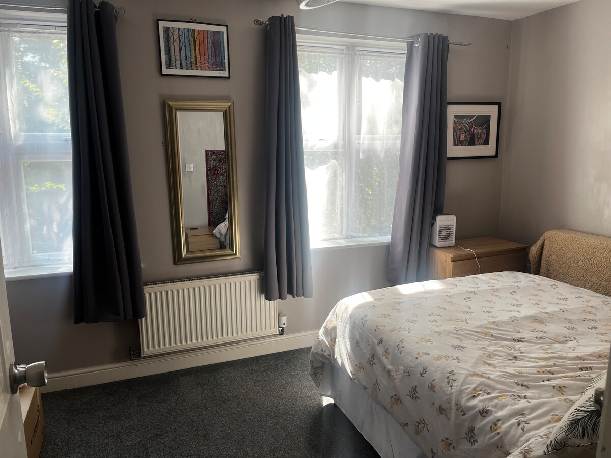 I own the house with my sister but she has recently moved out. This is her room and still has a lot of her things in it so there is currently no space in the wardrobe and the drawers, there is no TV but what it does have is a clean double bed for the night. It comes with a shared bathroom and access to a kitchen.