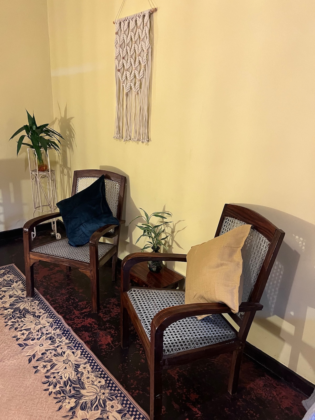 The living room is offered as a communal space where we will welcome you as part of the family. Our little daughter loves to share her teddy bear and we love to chat to new friends. You also have access to the balcony with views of the whole of Nuwara Eliya and our farm. Don't forget to look up at the clear sky filled with stars in our peaceful homestay.