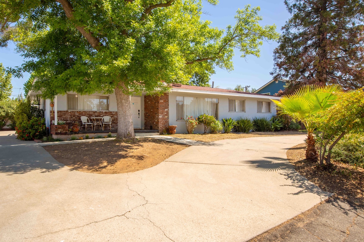 1976 California Ranch home surrounded by the fragrance of fruit trees, sound of happy birds, busy bees, sunshine and limitless stargazing. Generously spacious and bright ranch style home with tile and carpet. lots of rooms to lounge and relax. Perfect for a family reunion, friends’ weekend or some serious quiet time. Common areas include large living room, dining area and lounge and outdoor spaces in front of the house with a shaded patio and back yard dining area with bistro lighting.