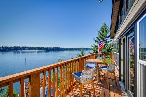 👍Located on the coveted South Shore, guests are greeted with SPECTACULAR, UNOBSTRUCTED 180 DEGREE VIEWS of the Olympic Mountains and the picturesque "Great Bend" that are sensational from the large deck and nearly every room in the home. This beautiful and peaceful location is the ideal setting for a romantic retreat or just to rest, relax and rejuvenate!