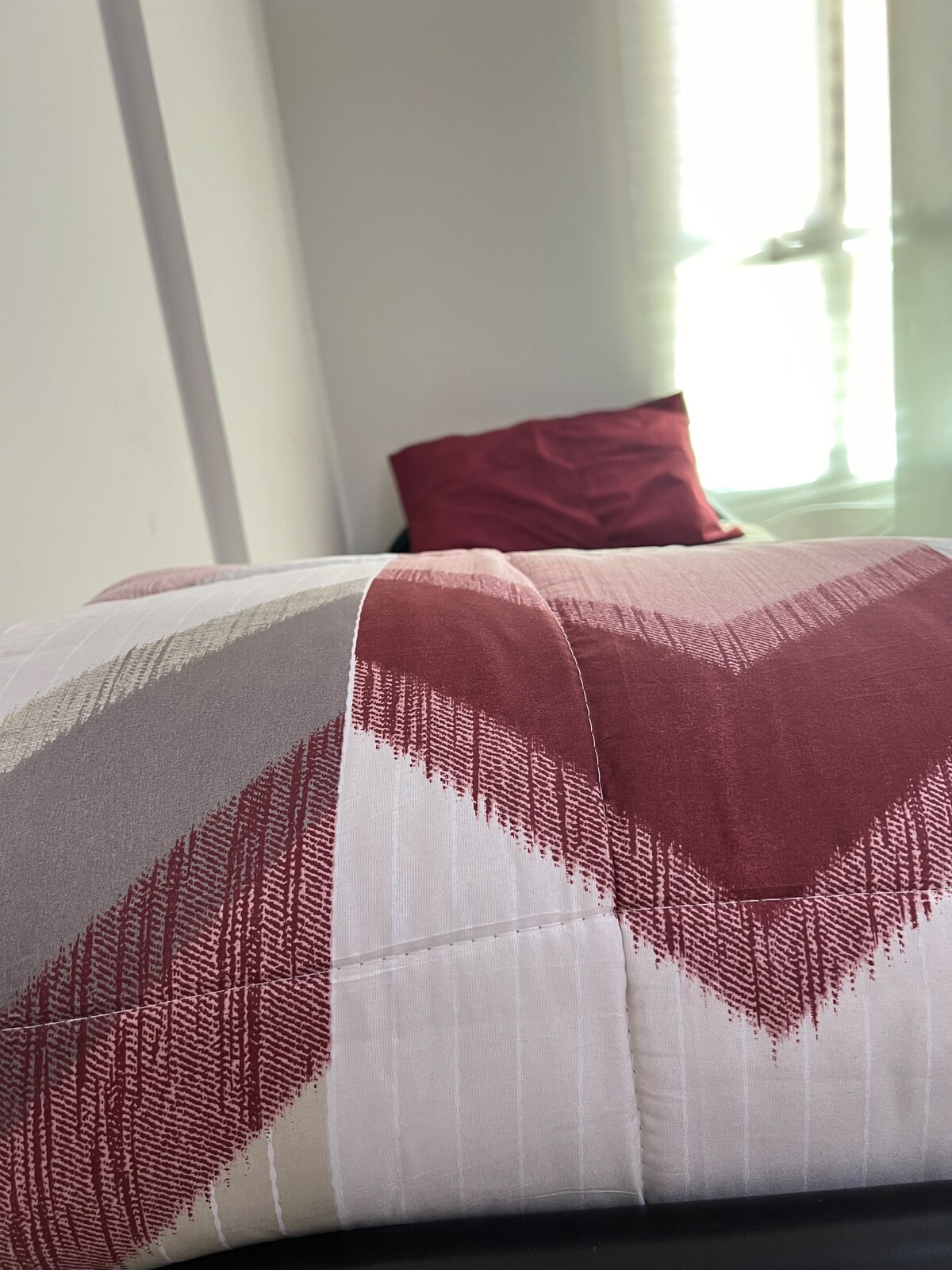 A fully furnished studio unit with a shared toilet, situated within a gated residential villa. This inviting space is equipped with essential cooking tools and provides a comfortable and private environment for a relaxing stay.