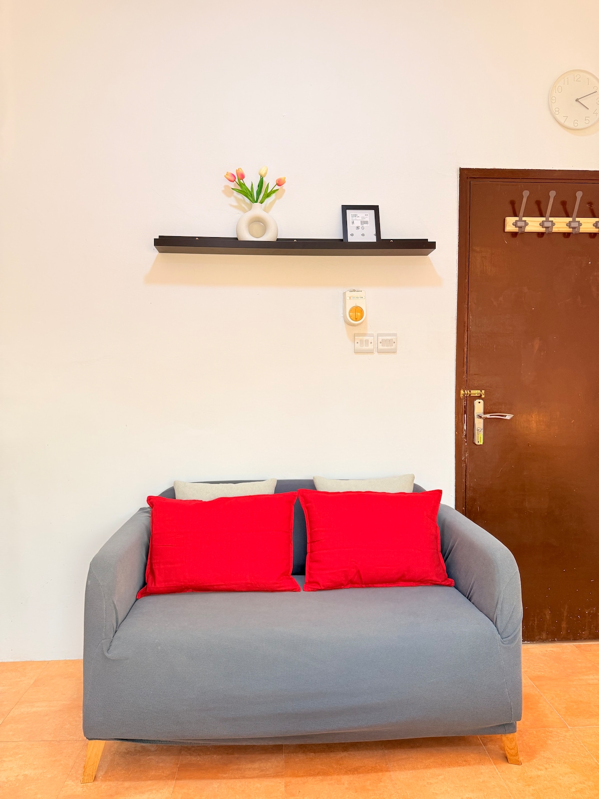 my place is super amazing in super high location in mutrah room antrance is seprate and in room is door connect to full apartment include sitting area kitchen with all amenities of cooking feel like home and bathroom next door out of room everything is super close fish market,seaport,Cornish harbour only some step of walking ,gold souq mutrah,hypermarkets ,beaches you can enjoy also amazing restaurant nearby many .location is amazing and apartment is well organise