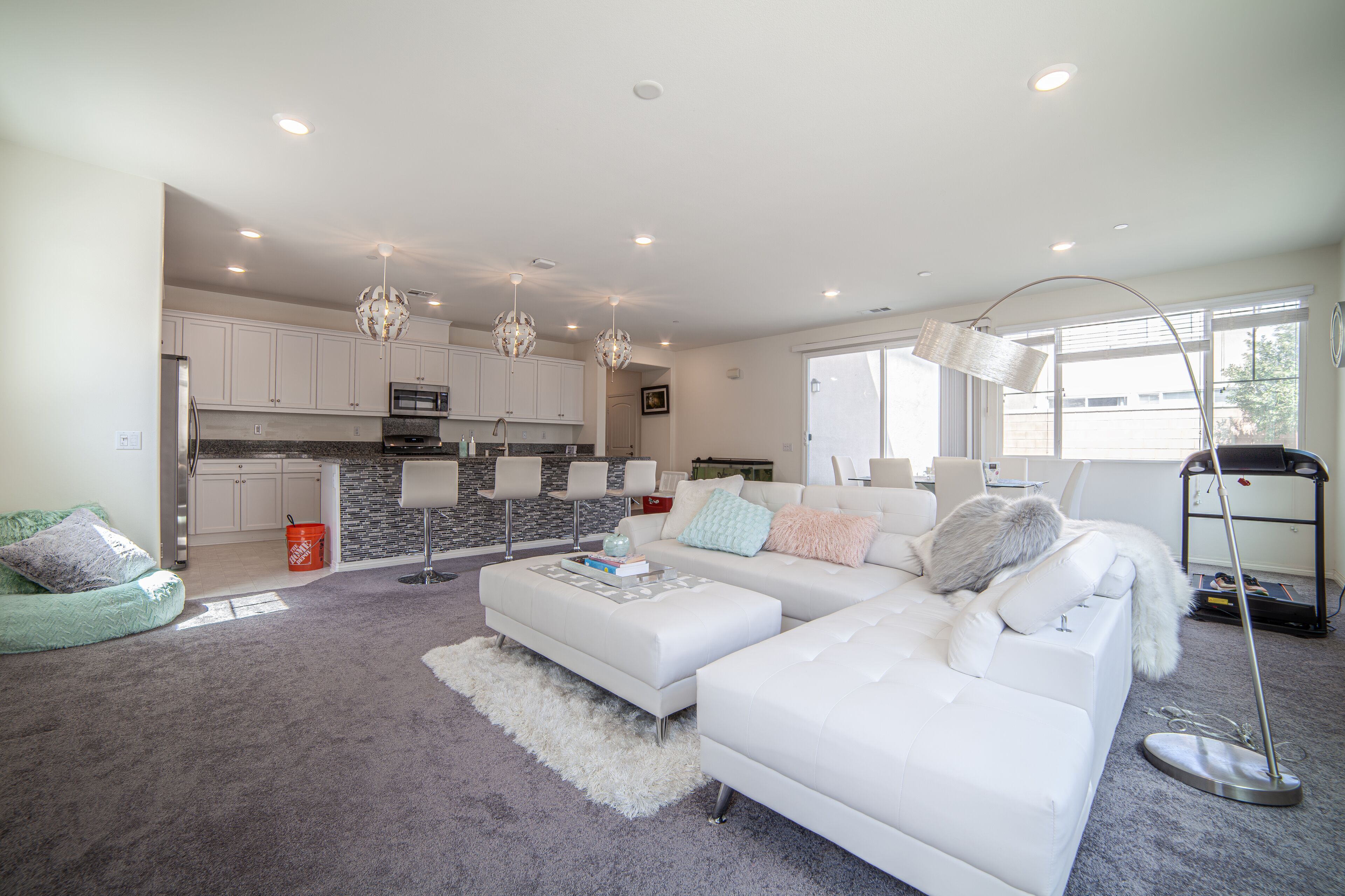 Unwind in our bright, open living space featuring a plush sofa and entertainment options.