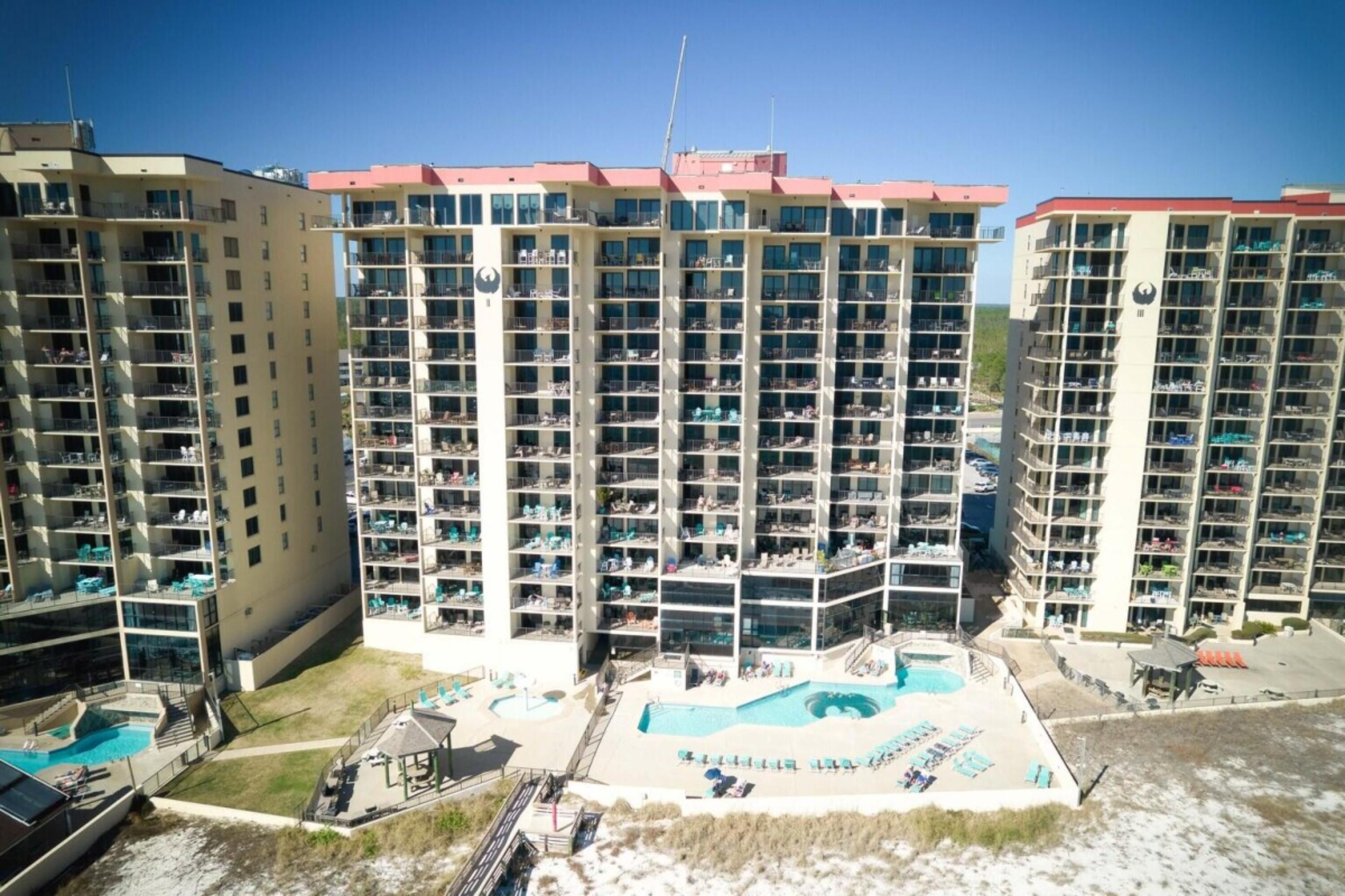- "I enjoyed the splash pad option for our toddler. He always had something to do if he didn’t want to go the beach. I would recommend staying here again. " - "Very nice and clean . Would stay here again. Inside pool nice . " - "Fire alarm hanging by wires, cabinets hanging by hinges , nasty stains on cover in master bedroom, aparagus left in stove and almost caught fire and stove disgusting, shower knob was broke into 2 pieces had to have maintenance fix first day so we could shower, gunk smeared on cabinet doors in bathroom, elevator stuck at one point people had to climb out because it was stuck between levels , 2x the pool had to be shut down because someone pooped in the pool and the 2nd time it got all over my husbands back. The wait for the elevator everytime took almost 15 min . Will NEVER go back "