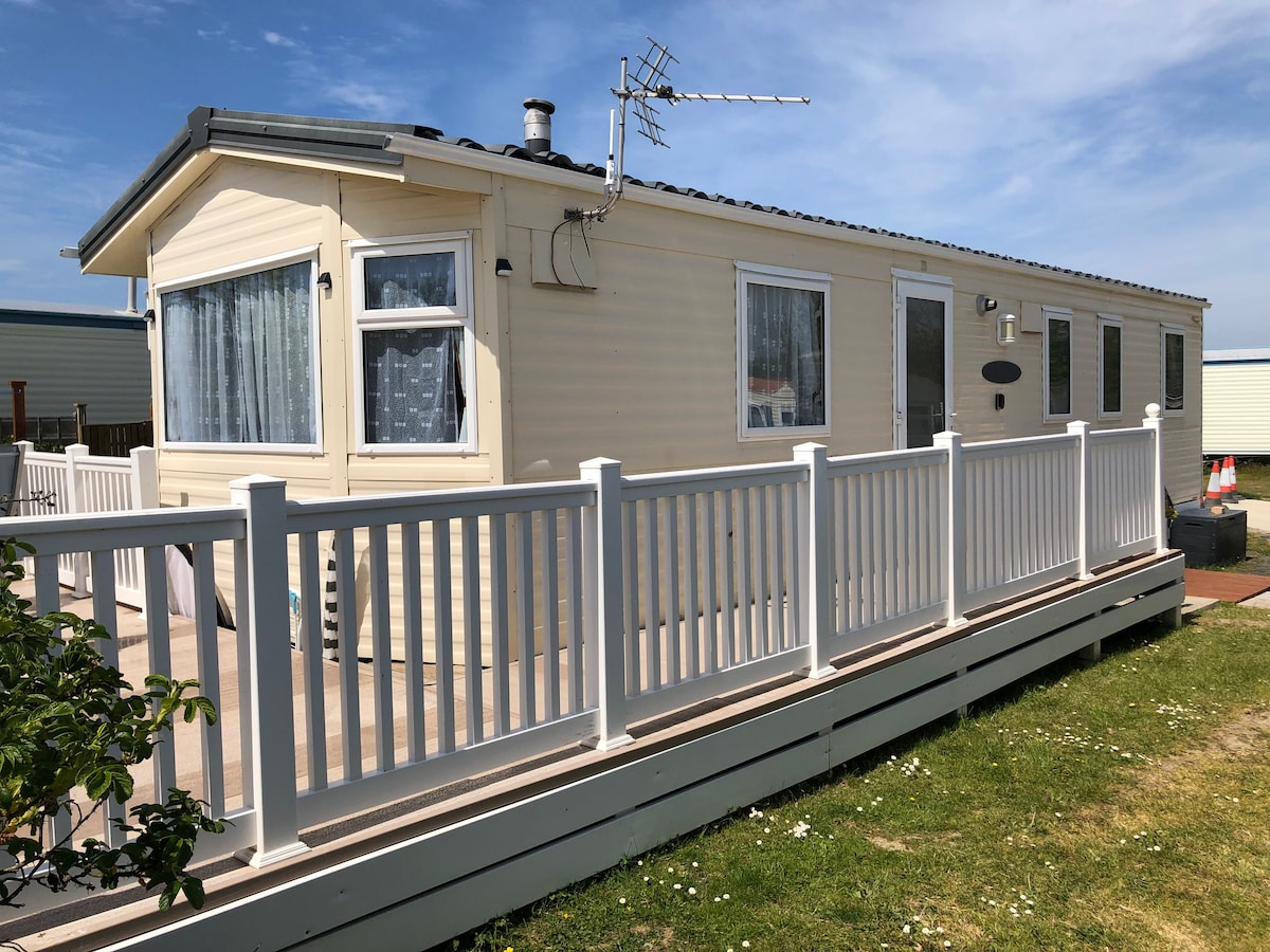 The spacious caravan is 35ft long and 12ft wide and has plenty of space inside and a lovely outside space. The lounge/dining room is a good size and the caravan is suitable for up to 6 people. We now provide bedding quilts and pillows but do not supply towels, so please bring personal and beach towels.