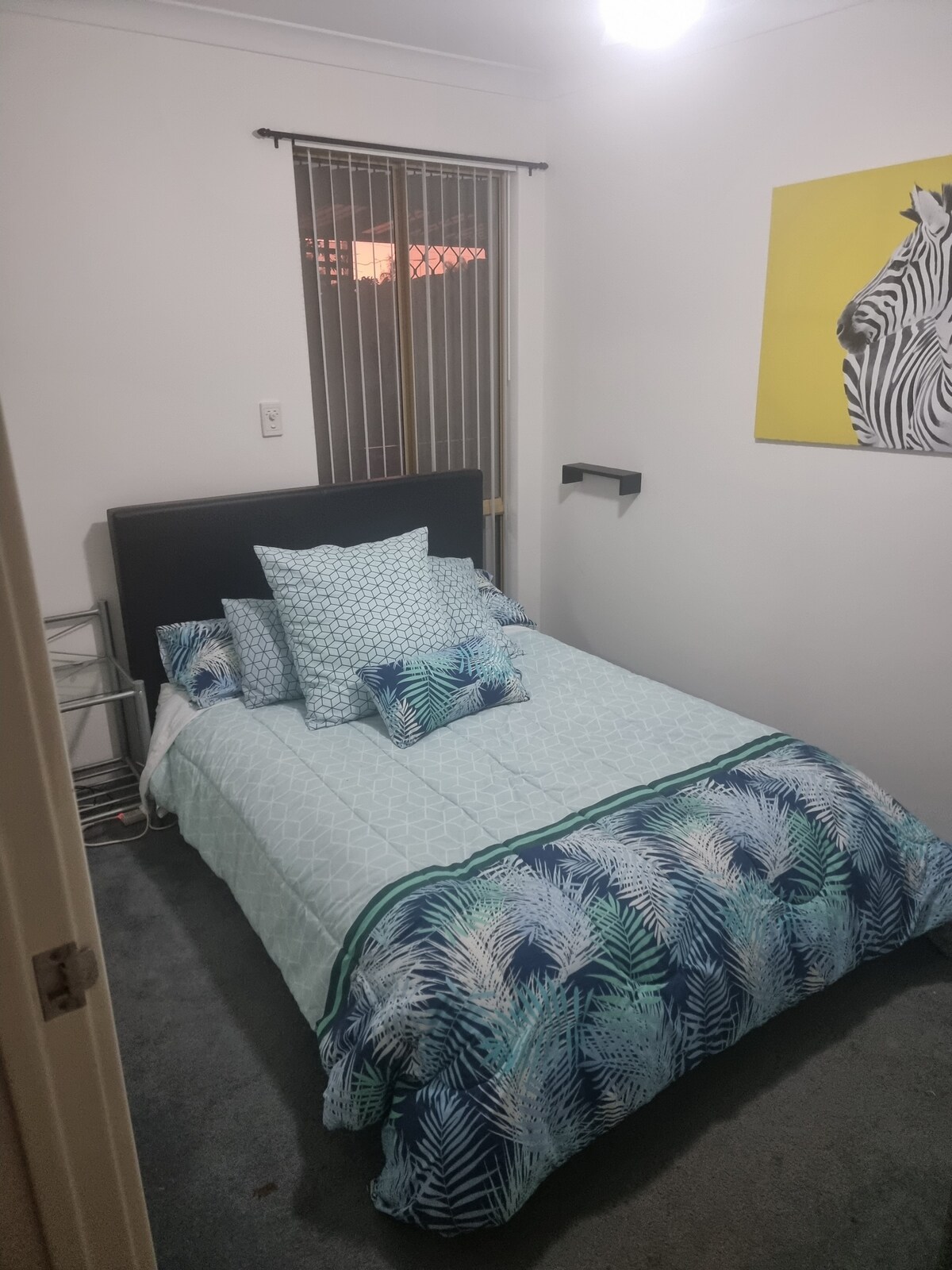 My self-checkin house is a warm & inviting space with a very convenient location. Your lockable room is a bright and clean master bedroom with plenty of storage space, a desk and leather lounge. The house is only 7kms to the airport (terminals 3&4), and 13km (terminals 1&2), 5kms to the city, 23 km to Swan Valley, 3kms to the Galleria shopping centre, The house is a 5 min walk to bus and 12 min to train.