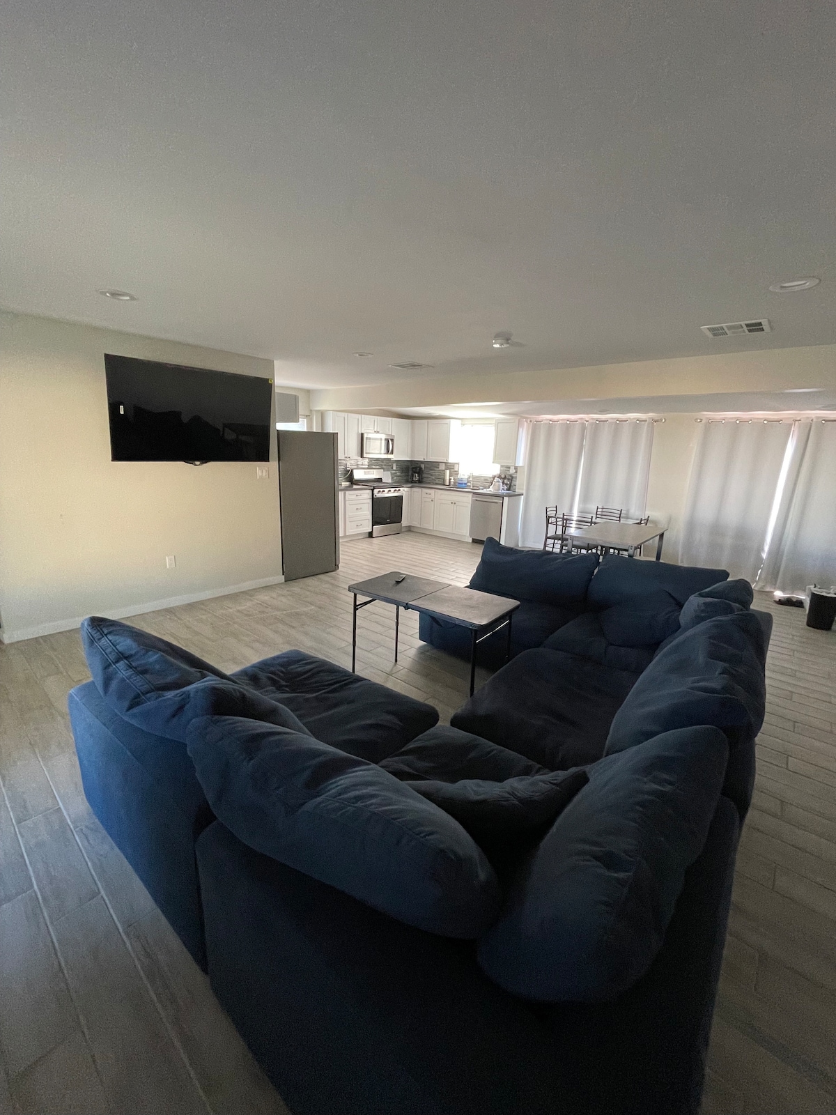 - Living room with large sectional and 65” TV