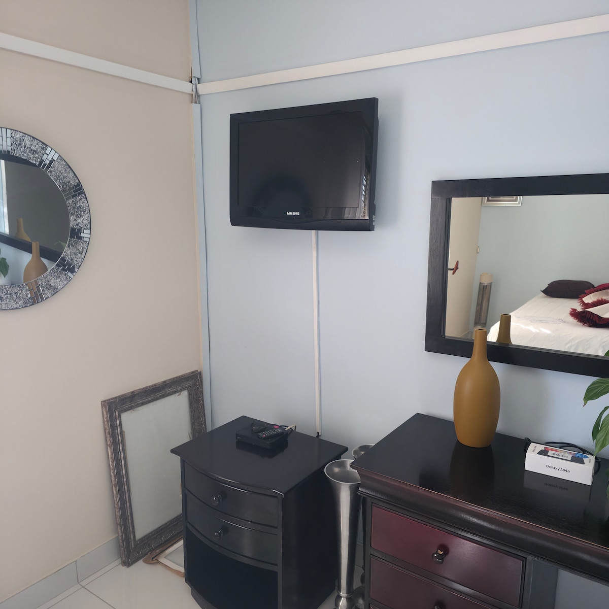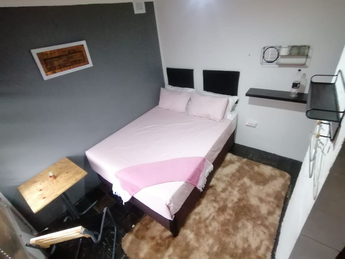 Tranquil space in a secure area close to town and shopping centers. Ideal for a short break or a long term stay. One bedroom with bathroom and lots of cupboard space on a residential property with it's own entrance. Netflix and WiFi available. The unit has a door interleading to the main house which is locked at all times.