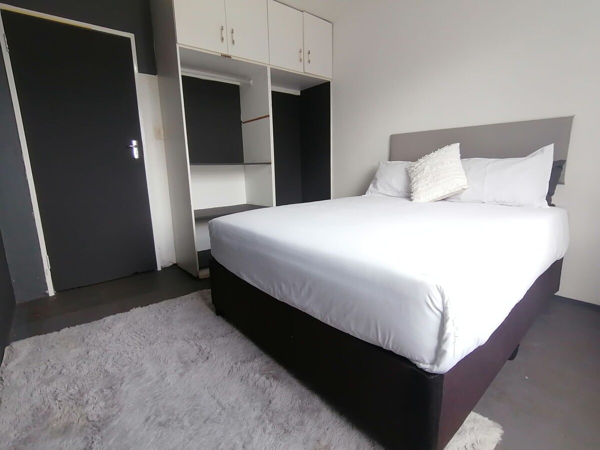 No more Loadshedding! Full solar system installed. We hope you'll find our 'industrial' modern apartment a refreshing change from the usual! This unit contains all that you could need for a quick overnight stay or weekend away. With easy access to CBD and the N3 highway, this is definitely the ideal place for you!
