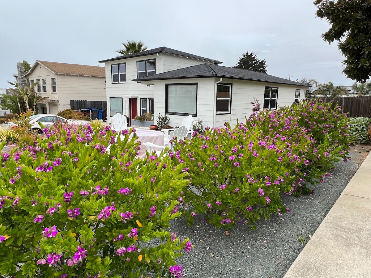 Come spend a relaxing stay in our spacious, clean, and comfortable 4 BR house one short block from the ocean. A great spot to vacation or "work from home" if you need a break from your usual (with good WiFi and several separate areas to support multiple Zooms!).