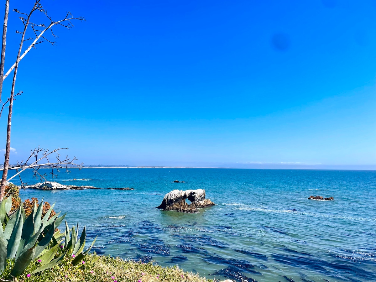 Just 1/2 block to the beautiful cliffs at the end of the street which is home to many harbor seals, otters and often dolphin. Take a short walk in either direction, you'll discover a local's cove with beautiful beach, tide pools, and fascinating rock formations.