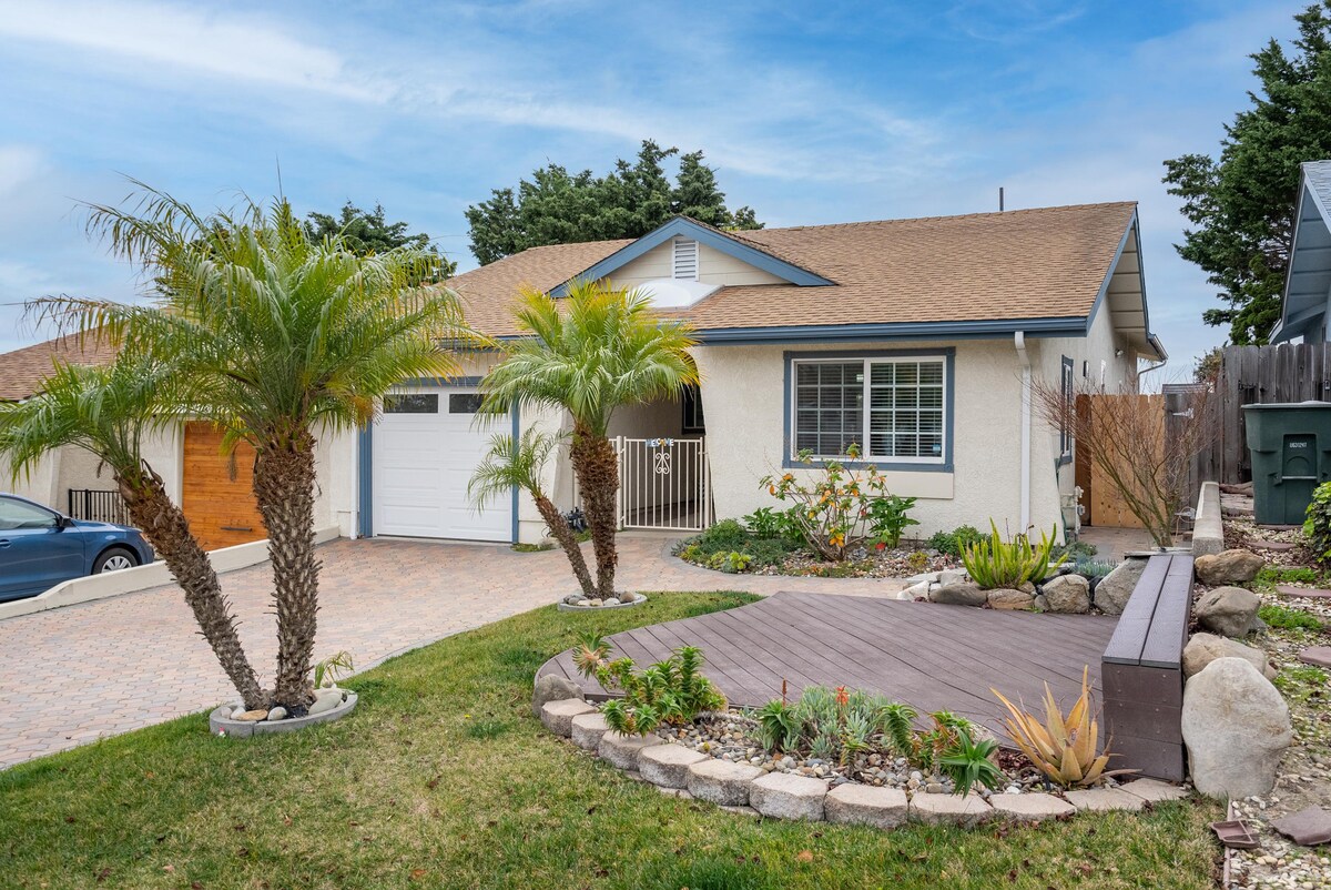 Situated on the warm Central Coast, this newly-purchased and newly-furnished home away from home features two ample bedrooms with queen beds, and a third bedroom with two twin XL beds. A bonus room serves as an extra bedroom, living room, office, or children’s play area. Large closets and ample dressers provide plenty of room for all your belongings. The two bathrooms are well stocked with ultra-soft towels.