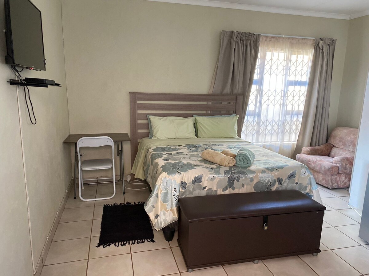 A quiet and private garden to relax in after a hard days work or travel. A dedicated work space for those eager to catch up on work projects or mails. We are determined to make your stay as comfortable as possible. Centrally located 2.6km (7min) from the Polokwane airport. Three major shopping centre and Hospitals less than 10 min drive away.