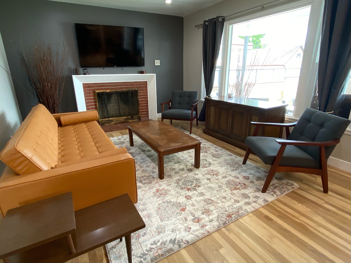 𝗟𝗜𝗩𝗜𝗡𝗚𝗥𝗢𝗢𝗠: 65” Samsung Smart TV (offering Amazon Prime) • Sofa • Lounge Chair • Coffee Table • TV Stand with cabinets • Fireplace (for display only)