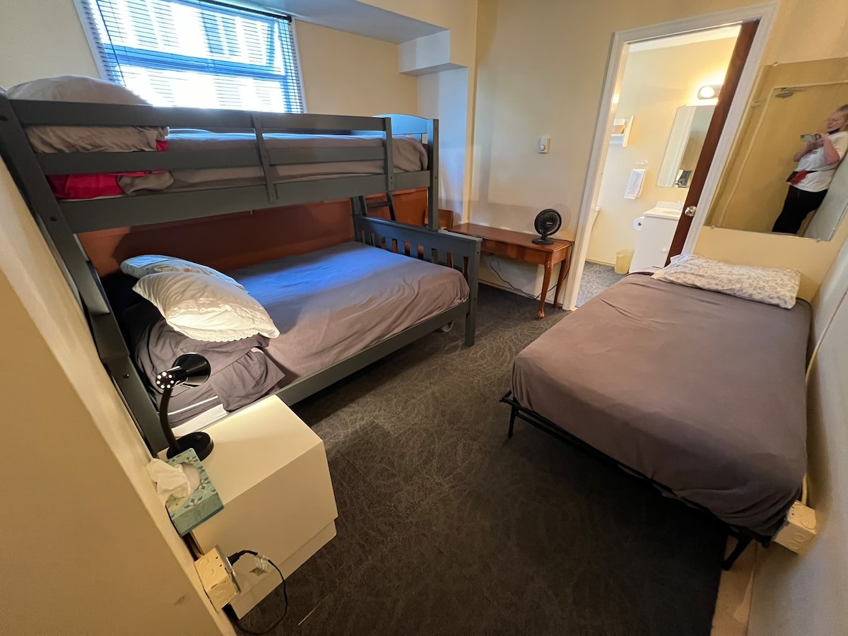 Private suite with 2 queen sized beds, 5 single beds (in bunk formation), 1 single foam mattresses for the floor (by request) and seating area. Private ensuite bathroom (shower but no bath tub). Keypad code provided on confirmation. Private kitchen/laundry/diningarea/seatingarea. Free highspeed WiFi. Free Parking. Pets considered on request.