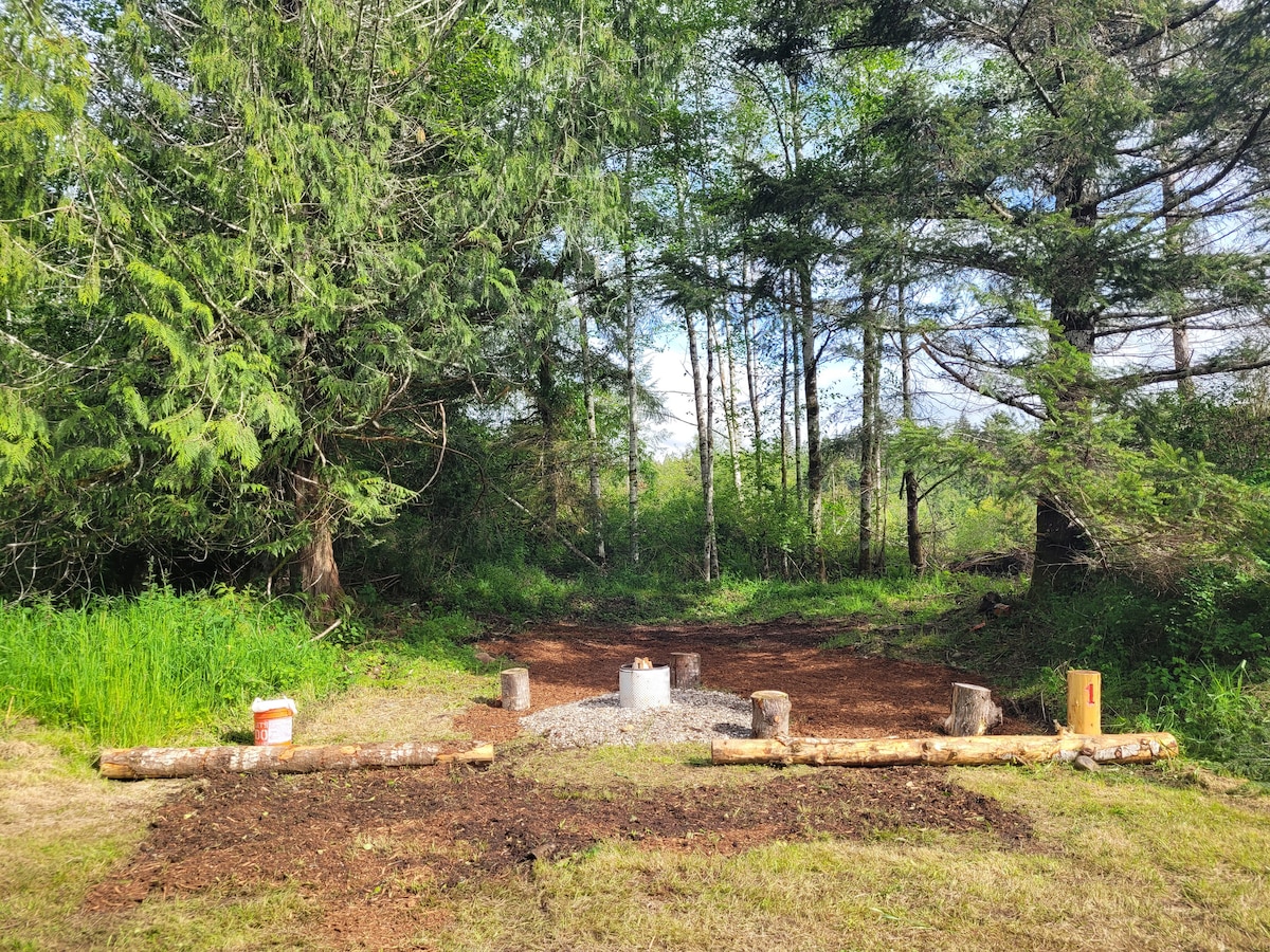 With a personal Fire pit, and 8 acres of private rain forest to explore. Close to the ONP, ODT, and lake crescent. Sol Duc hot springs is just across highway thru park entrance. Airbed provided, bring your own bedding.