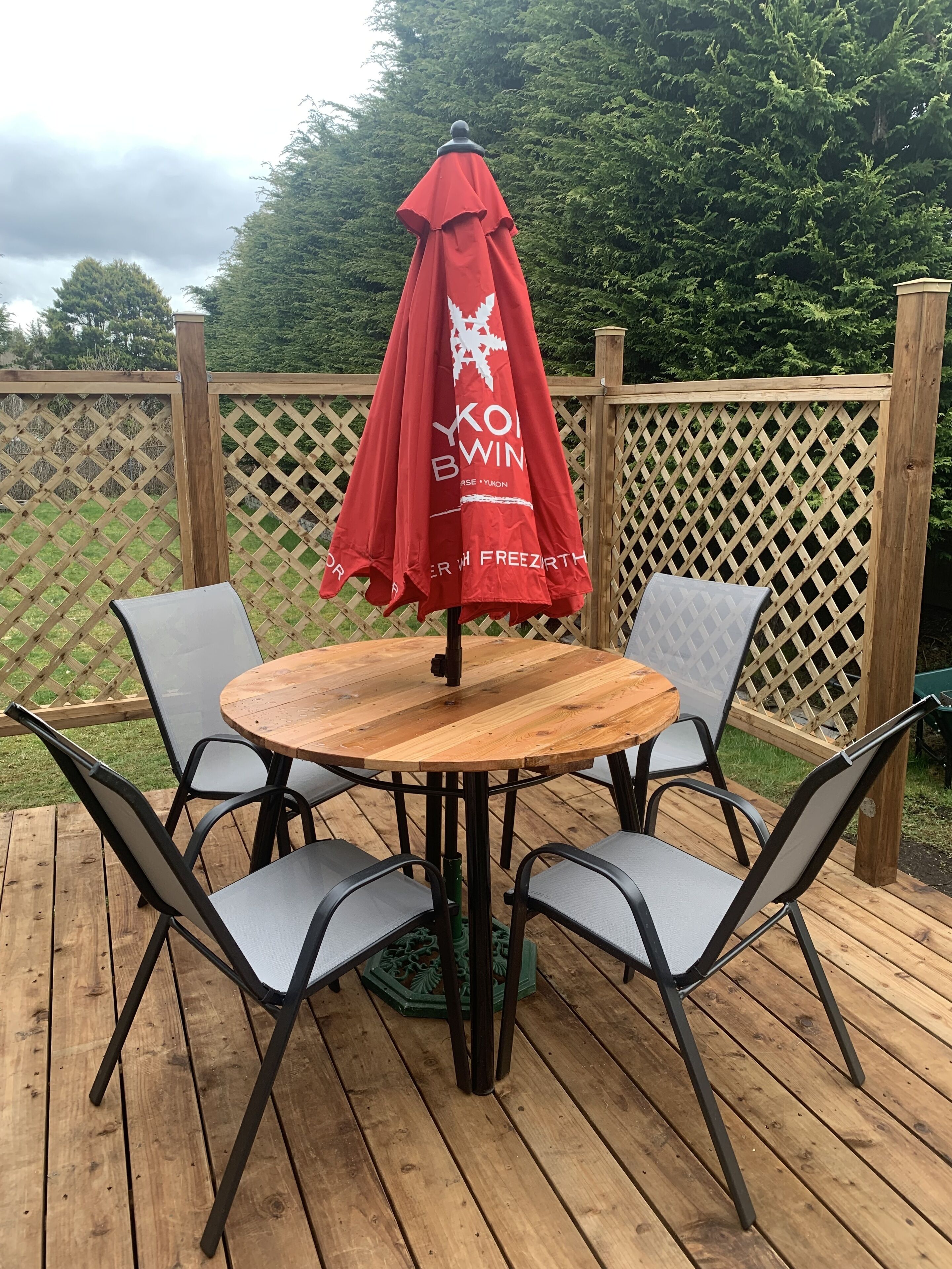 guests are welcome to use the covered space in front of the suite as the picnic table outside.