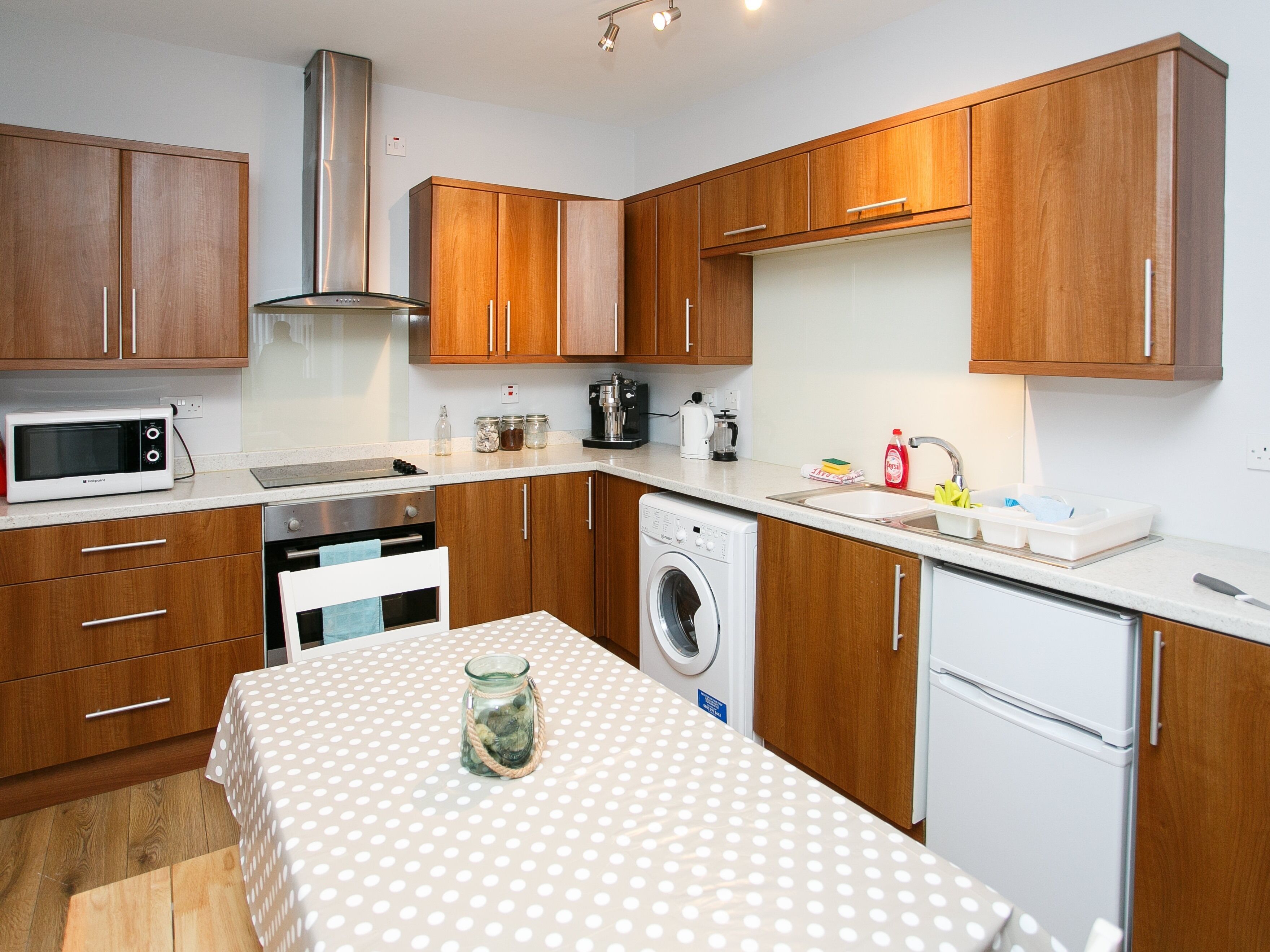 Our ground floor apartment is one bedroom, with modern kitchen, bathroom and enclosed outdoor space. There is one step at both the front and back doors to access the property. There is a corner sofa in the living room which converts to a comfy double sofa bed. We have WiFi, internet enabled tv, washer, cooker, microwave, fridge, etc. We have a BBQ available for guest use. We also have one designated off street parking space, and usually room for a second vehicle. We are pet friendly on request. We are also tourist board approved.