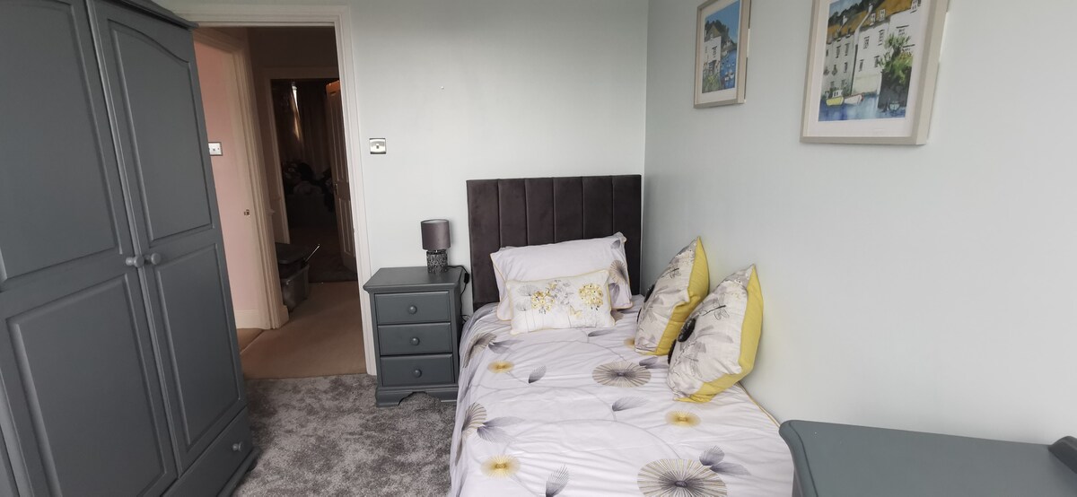 Ideal for single person, who needs a safe, friendly place to stay. 5 minutes walk from Fratton train station. Room is large enough for single bed and hanging space. Shared bathroom with one or two other people. Push bike storage is available, the bike would be kept outside to the rear of the property which is behind locked access. You are welcome to use the microwave but please do not use the cooker or hob.
