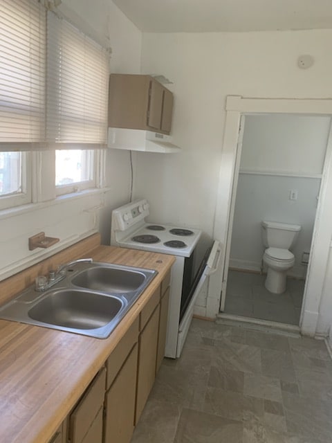 The house is a "duplex", and the apartment we have listed is the upstairs unit, which consists of the entire second floor of the house, complete with kitchen, bathroom, large living room, bedroom and separate entrance. The downstairs of the house is a separate apartment, where the tenants are two older ladies who have lived there for over 7 years.