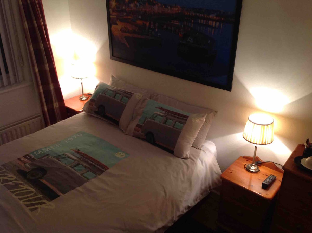 Perfectly positioned house, nicely located five minutes walk from town and beach. Cosy living space with wood burning stove and large outside garden with coastal views. Perfect for all local bars, restaurants and travel links.