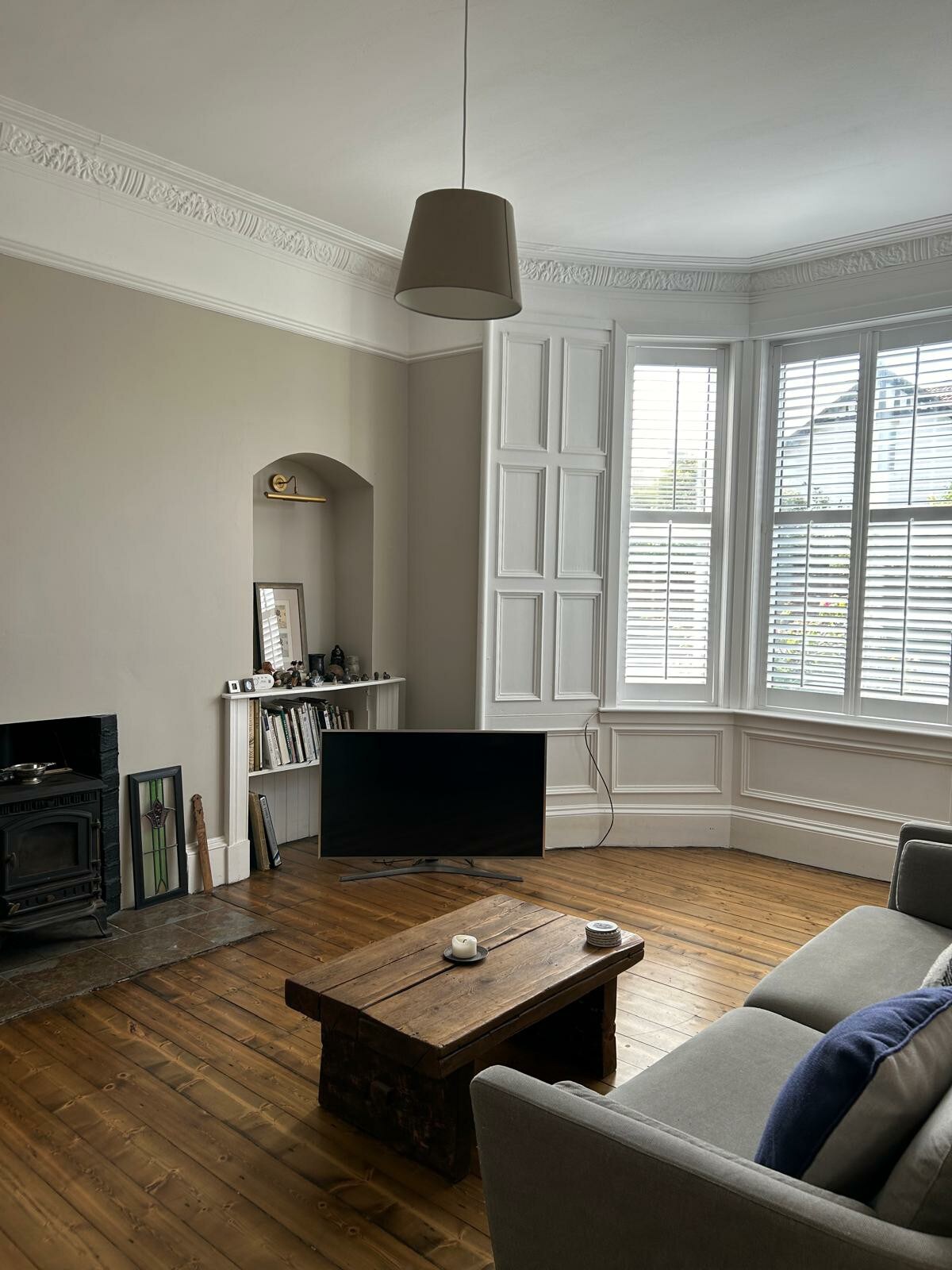 Gas fire in lounge which is open plan to the kitchen /diner. Dining table extends and seats 6 . Patio doors to outdoor seating area in private garden with outdoor fire pit and wood burning stove. Study area and small dressing room. Quiet outdoor resident cat