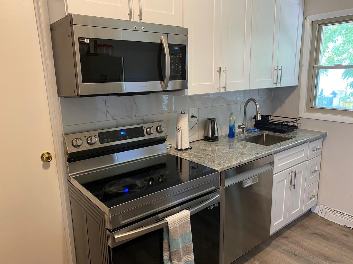 Large kitchen with stainless steel appliances and dishwasher. FREE Washer and Dryer. High-Speed WiFi. Abundant free street parking.