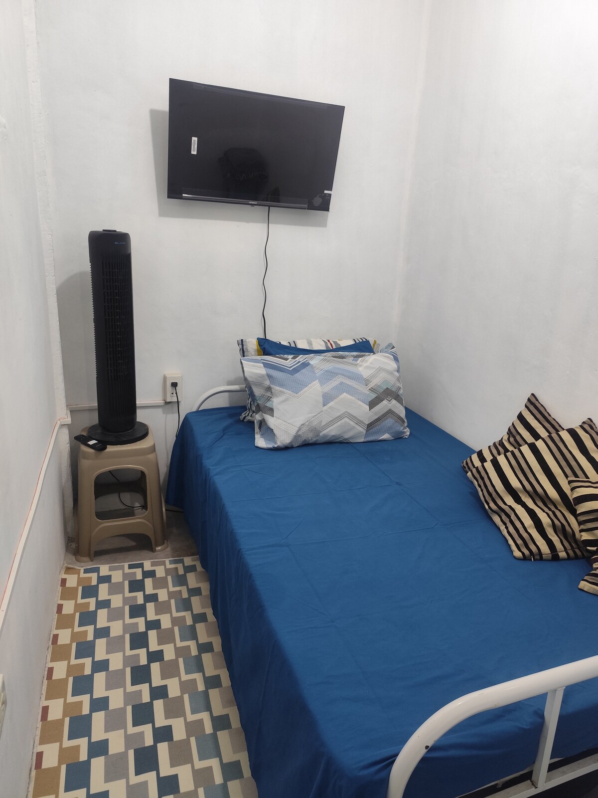 This up and down house has a big living room and a complete kitchen in the 1st floor. It has 2 bd, 1 bath, family room with TV and veranda in the 2nd floor. Street parking only in front of the house, gated entrance community with security guards. 5 to 10min walk going to convenience store, flea market and laundry shop. Going to Ayala Fairview Terrances, Robinsons Nova and SM Fairview is 15 to 30 minutes away via private car. Public transpo...tricycle, jeep, UV and taxi. Note: No AC and wifi.