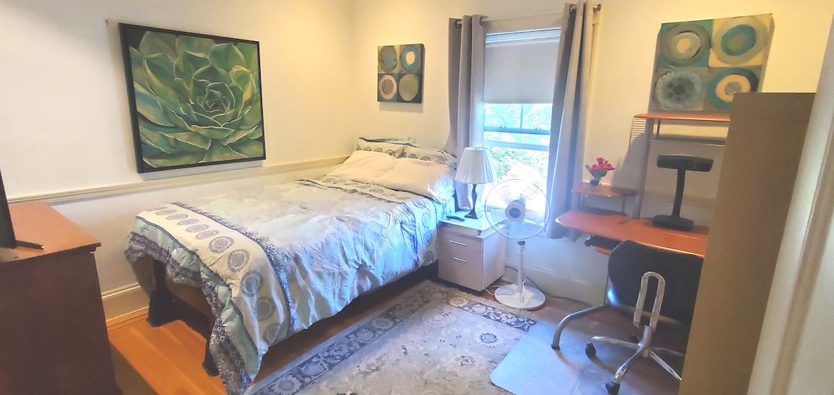 Forget your worries in this spacious and serene space with adjustable board spring,A)C in each room, locks in each room, 4 mins walk to Quincy Adam Tstation and 0mins to the bus stop -238. Host LIVES OUTSIDE THE PROPERTY/different location.