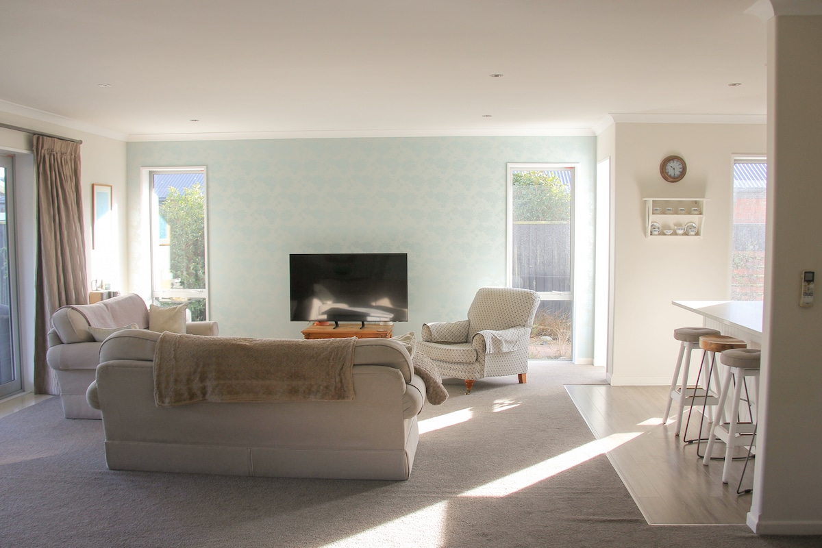 30 minutes drive from airport. 30 minutes drive to central Christchurch. Matawai nature park 2 minute walk.